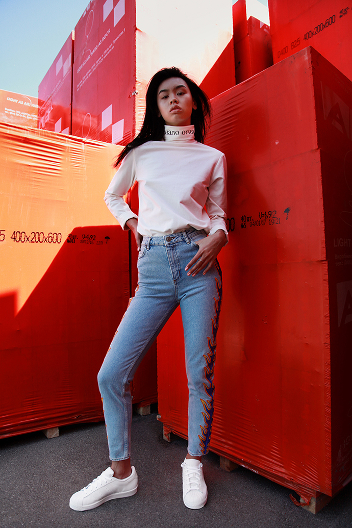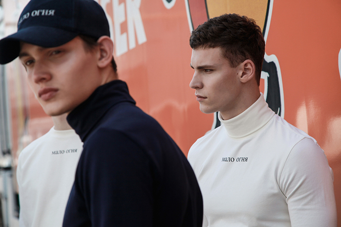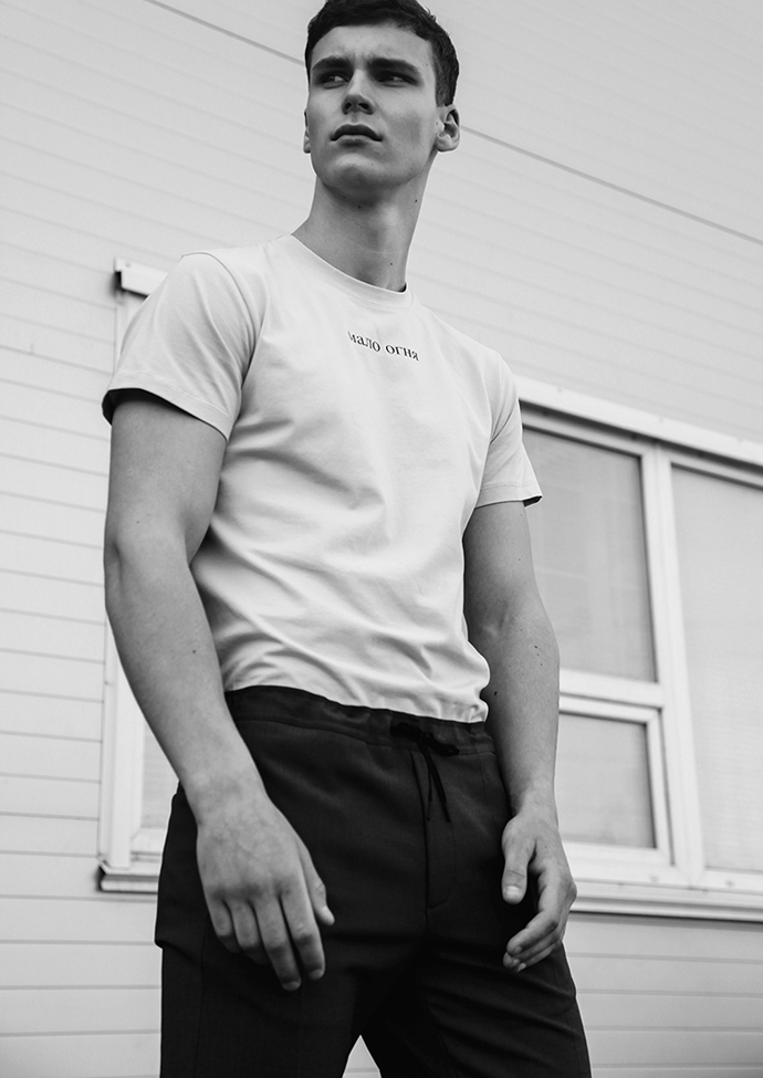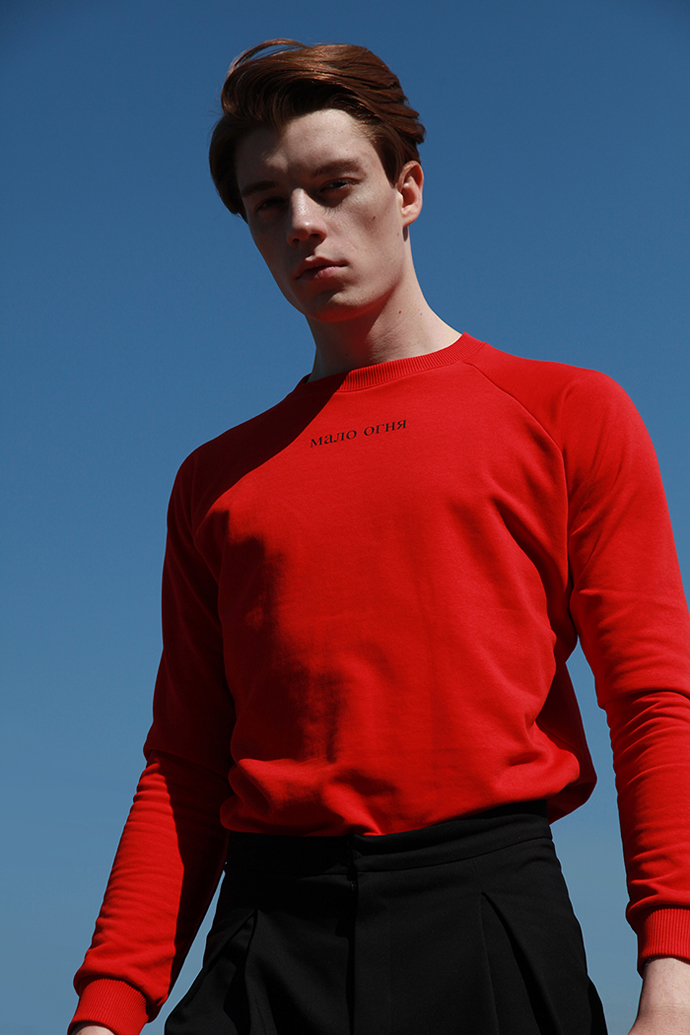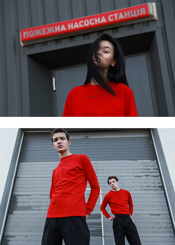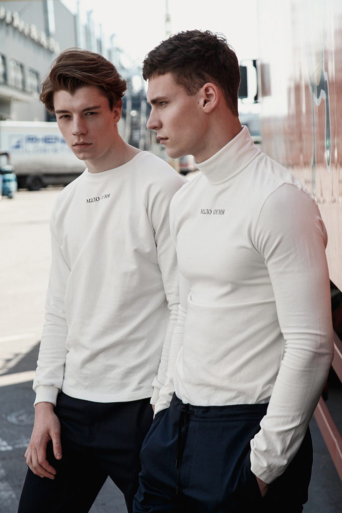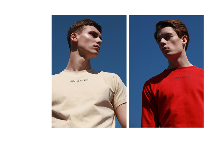 “The main idea behind the shoot of “Мало Огня” was to show our pieces in their primeval, to underline the colors and minimalism, without paying attention to the superfluous entourage. There’s only a man and his garments.”