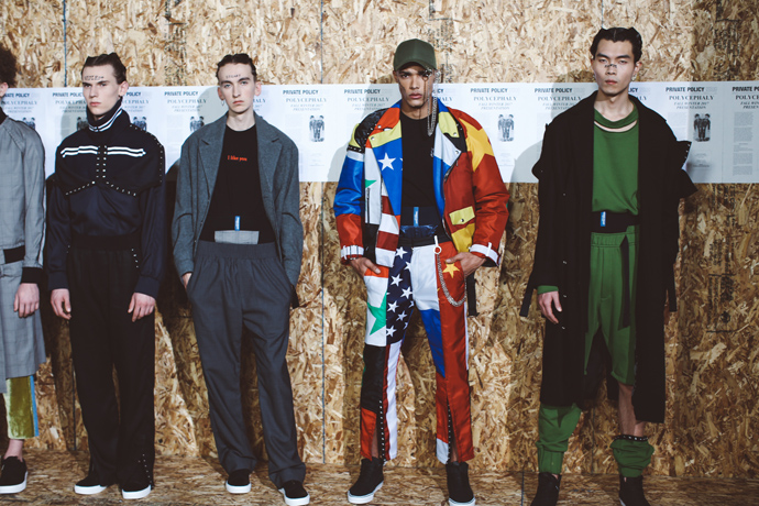 For the Fall/Winter 2017 season, PRIVATE POLICY takes on the ever-changing landscape of modern globalization; by realizing that globalization has surpassed the “neighboring” relationship and moved into a “polycephaly” based relationship; a condition of having multiple heads conjoined to one body. These “heads” are meant to symbolize each nation’s unique beliefs, cultural identities and interests. The “one body” is a metaphor for a giant global system that can easily be affected by a single action taken by any other country. The “body” cannot survive without the “heads” collaboration, so the trouble of one area becomes the trouble of all.