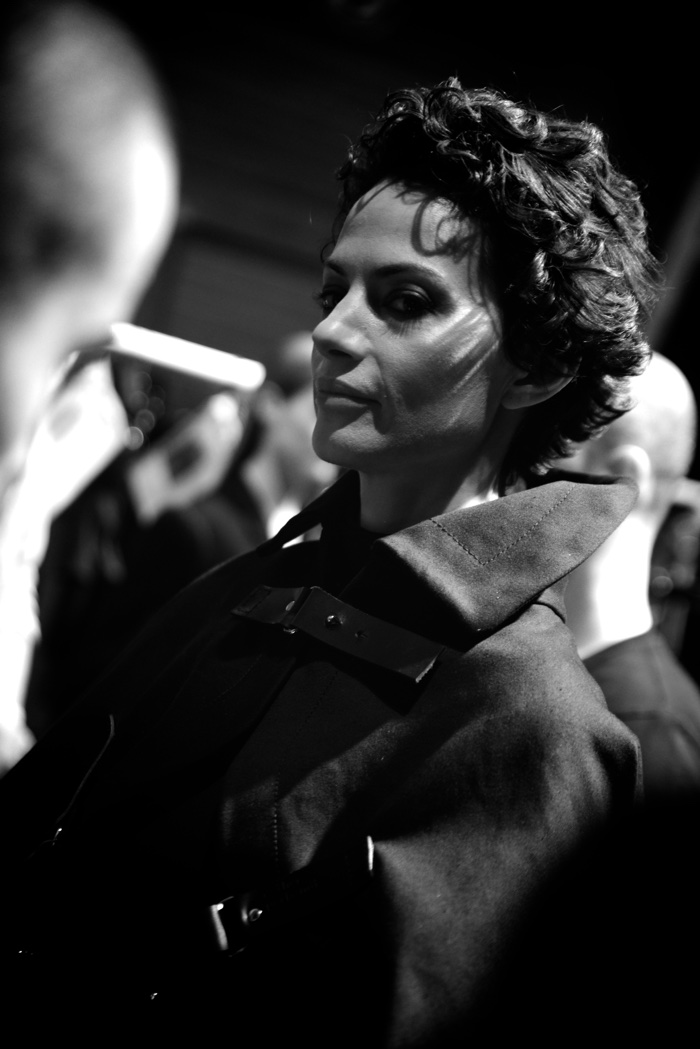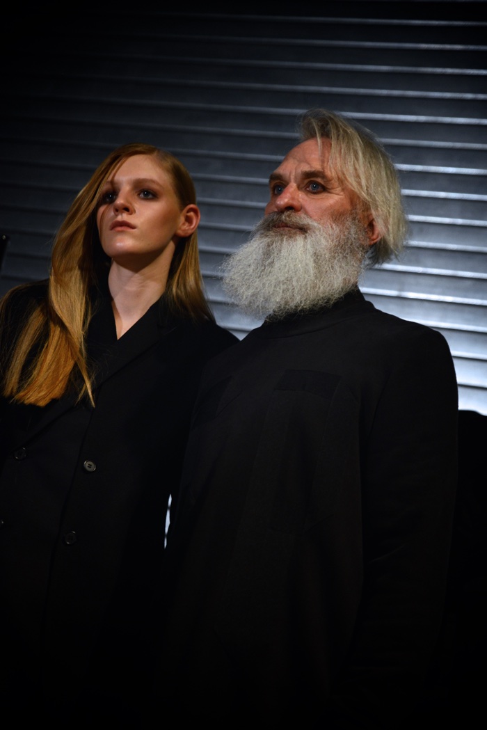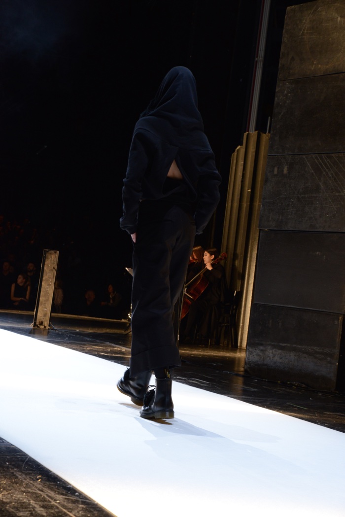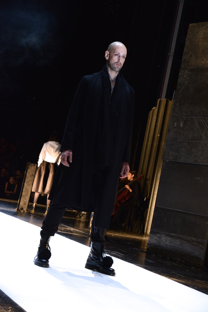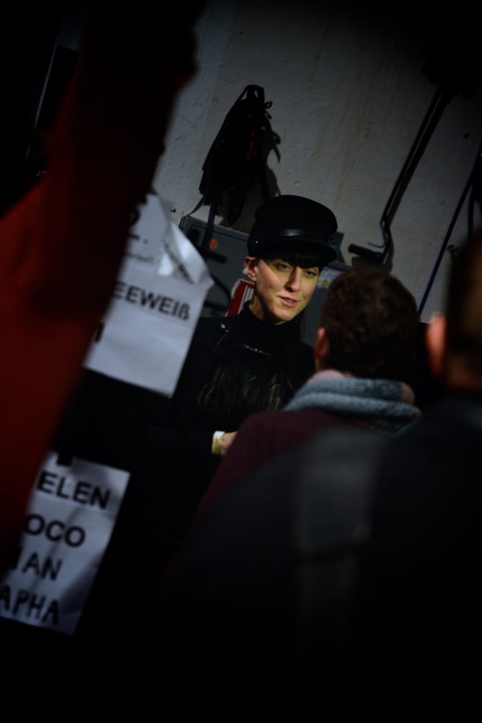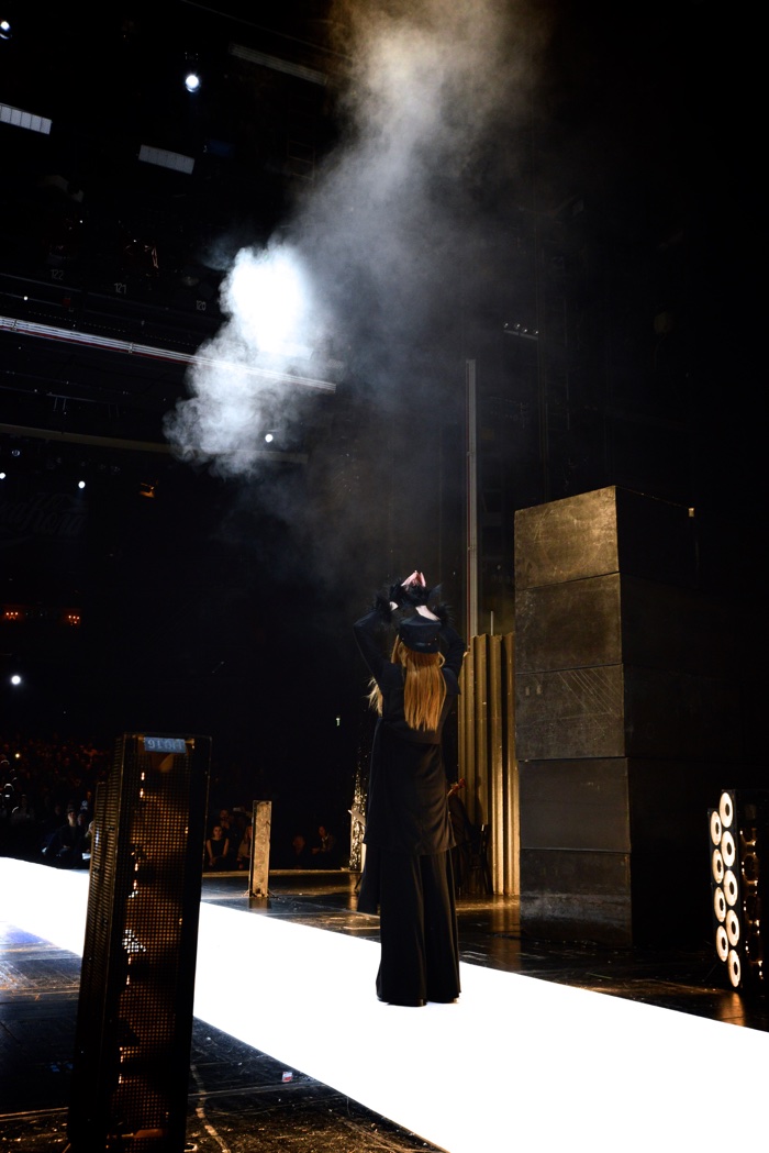 Berlin Fashion Week! #EMPÖRTEUCH – THE QUEEN of Berlin´s dark fashion style Esther Perbandt wowed the crowd during MBFWB with an outstanding runway show at Volksbühne. She is a designer, visionary, performer, master of ceremony and entertainer. Her new collection is a masterpiece! The designer chose to return to Volksbühne Berlin for a second time, magically attracted to the venue, which fits her like a second skin. On the stage of the memorable Bert Neumann, where the black and white films worlds of the twenties and thirties meet Buster Keaton, Dada, and George Grosz – Esther embeds her mix of present and future personalities – unconventional, confident, fragile, clear, energetic, somber and touchingly beautiful. We have seen many of our friends and KALTBLUT icons on the runway like photographer Florian Hetz, our very first cover model Lex Olsen, male model Sasha Marini, designer Herr von Eden, musician Romano and supermodel über-icon Vea von Lehndorff (aka Veruschka).