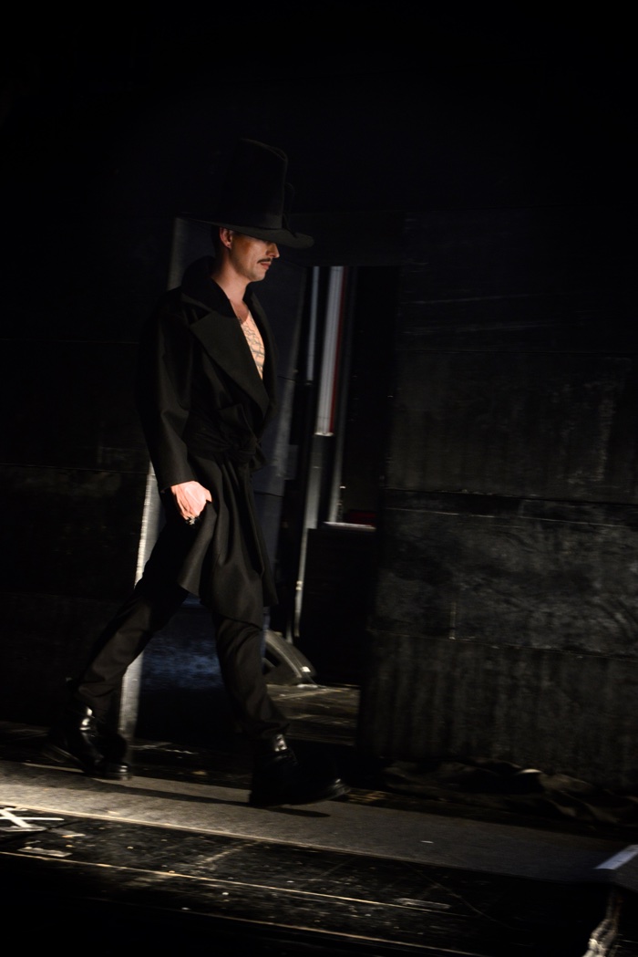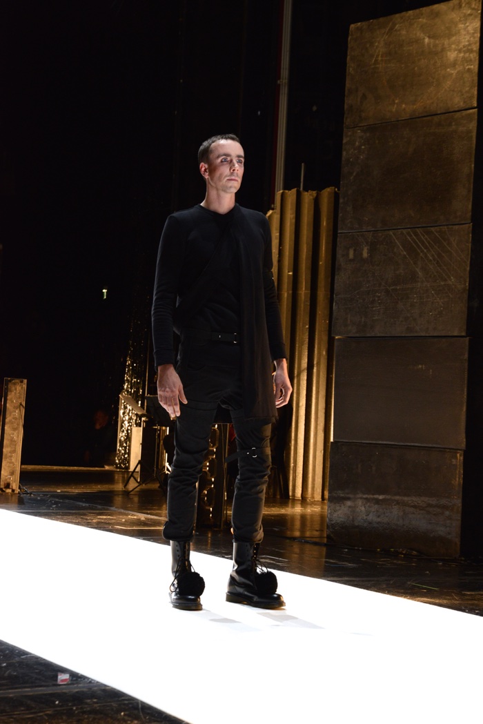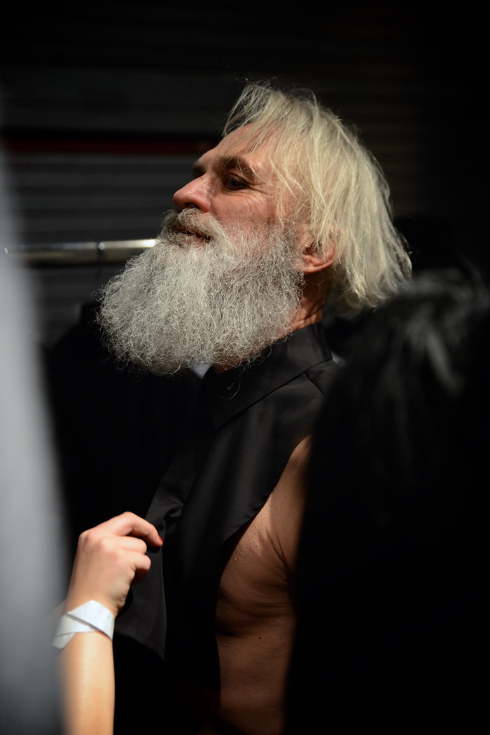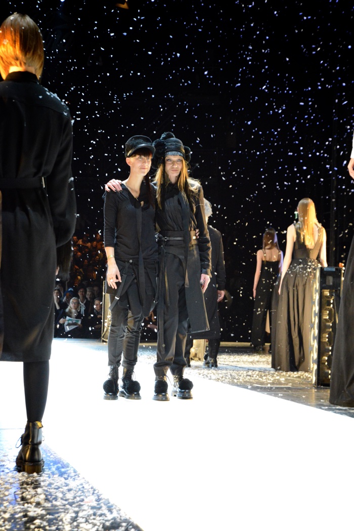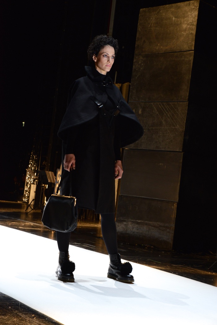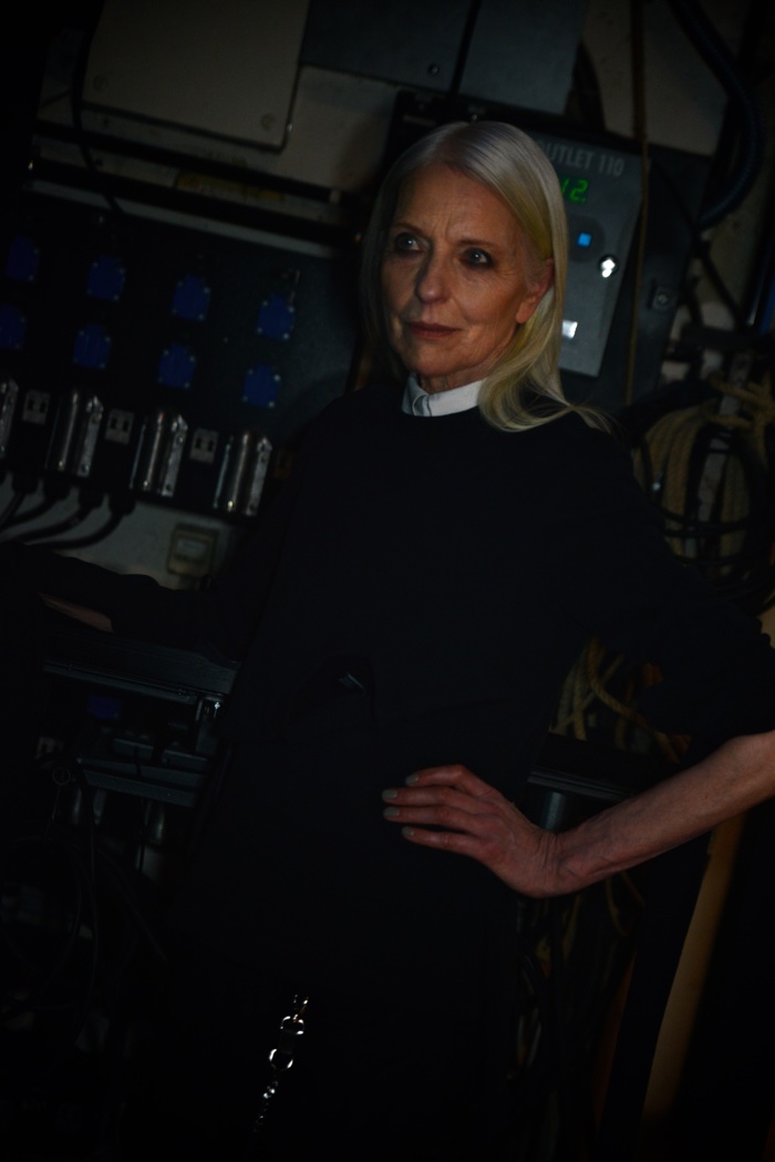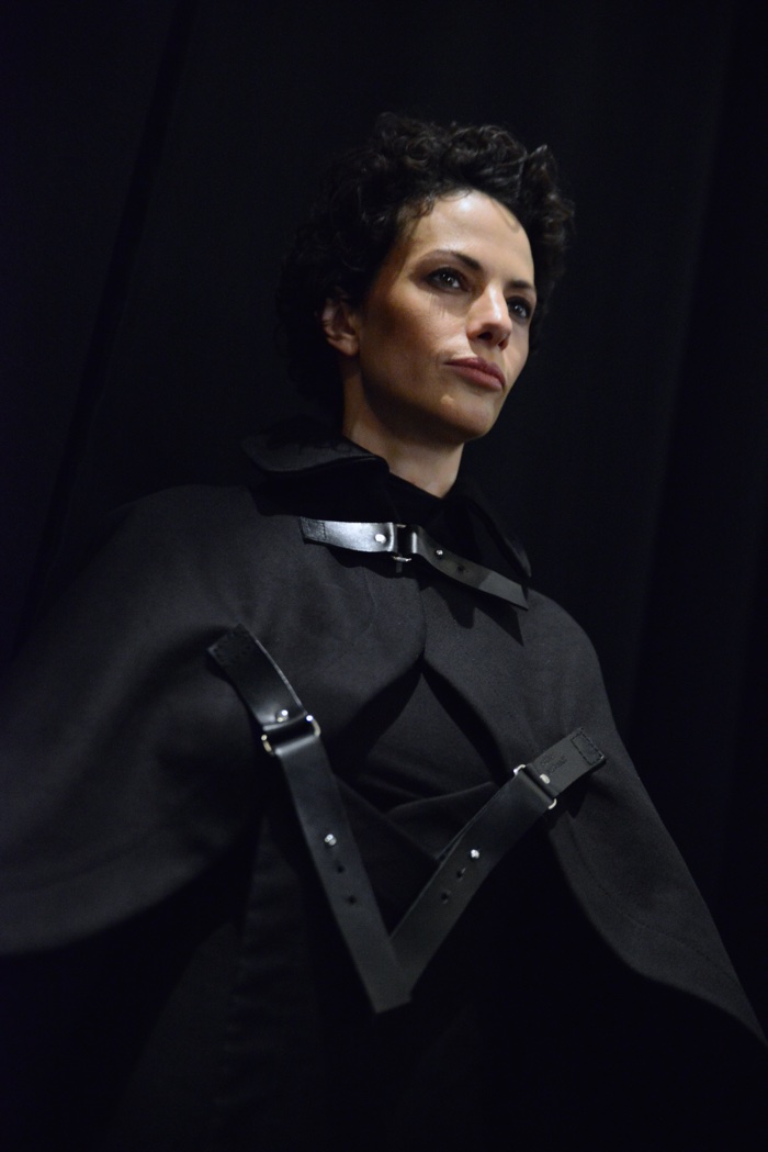 Berlin Fashion Week! #EMPÖRTEUCH – THE QUEEN of Berlin´s dark fashion style Esther Perbandt wowed the crowd during MBFWB with an outstanding runway show at Volksbühne. She is a designer, visionary, performer, master of ceremony and entertainer. Her new collection is a masterpiece! The designer chose to return to Volksbühne Berlin for a second time, magically attracted to the venue, which fits her like a second skin. On the stage of the memorable Bert Neumann, where the black and white films worlds of the twenties and thirties meet Buster Keaton, Dada, and George Grosz – Esther embeds her mix of present and future personalities – unconventional, confident, fragile, clear, energetic, somber and touchingly beautiful. We have seen many of our friends and KALTBLUT icons on the runway like photographer Florian Hetz, our very first cover model Lex Olsen, male model Sasha Marini, designer Herr von Eden, musician Romano and supermodel über-icon Vea von Lehndorff (aka Veruschka).