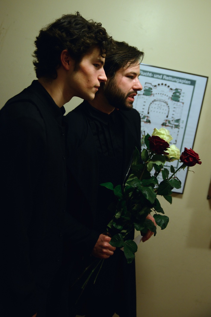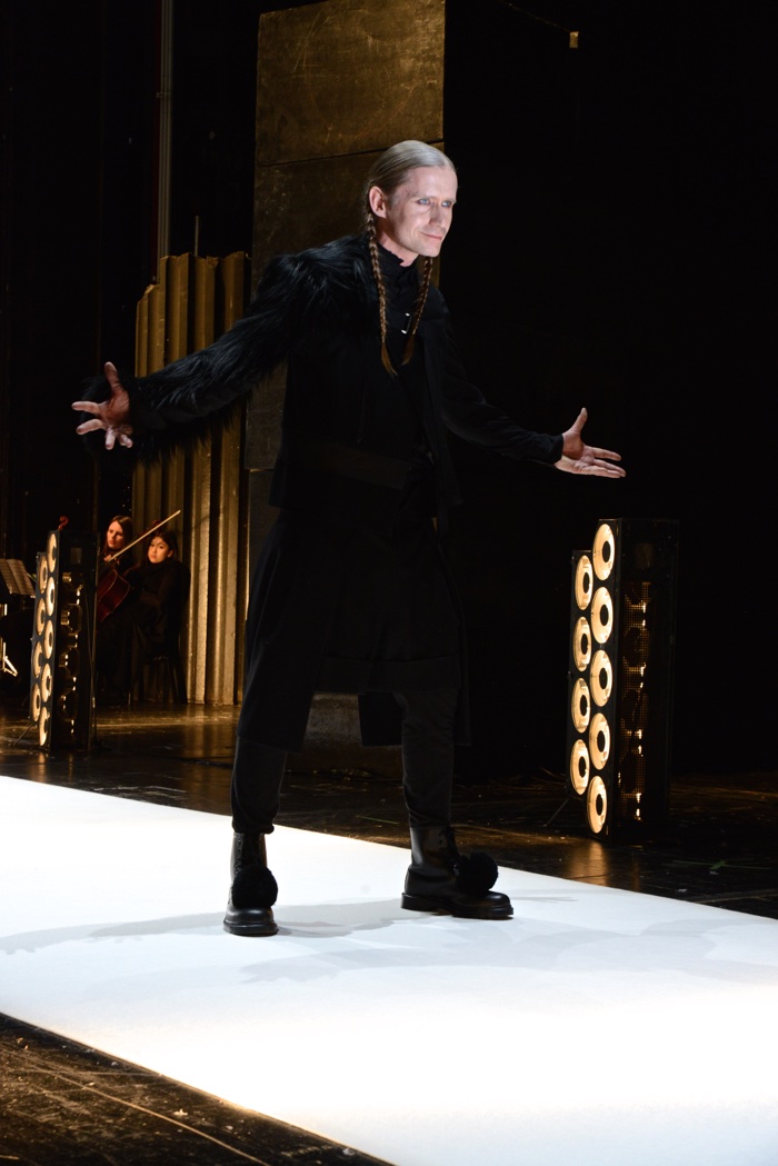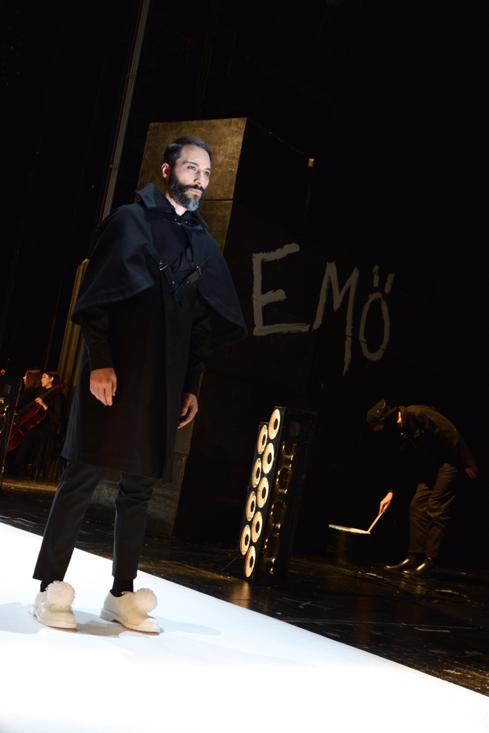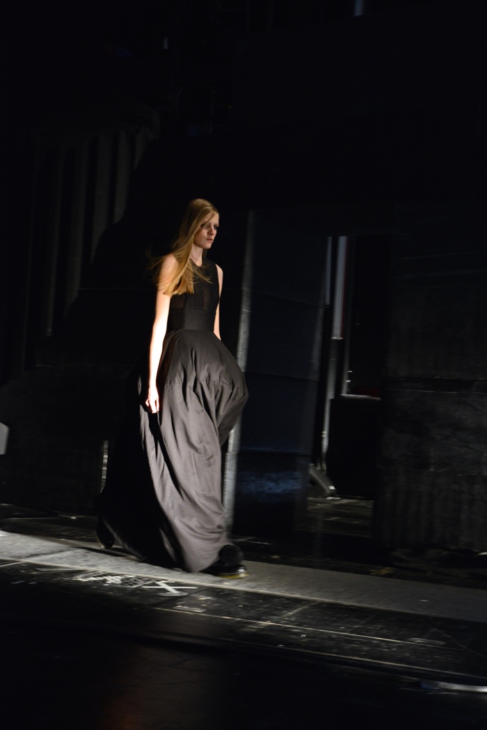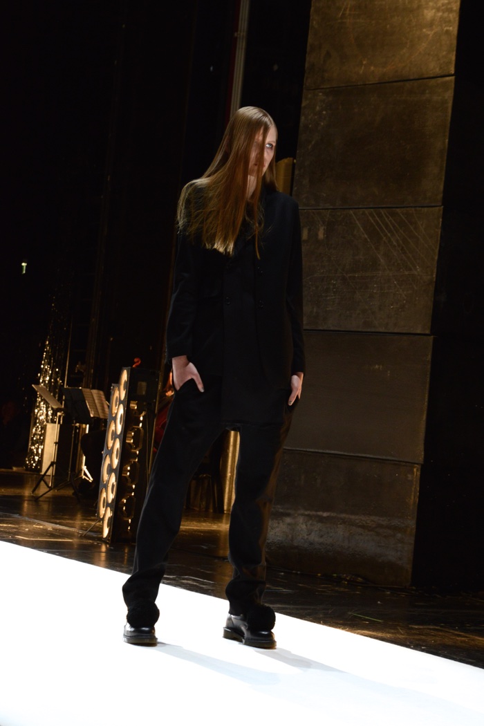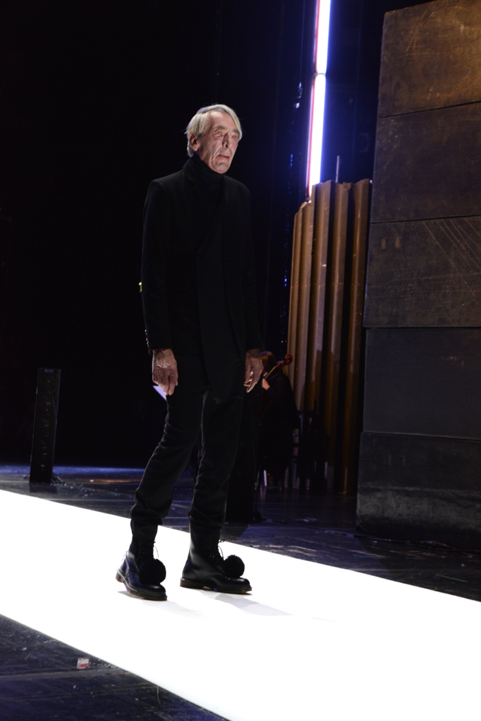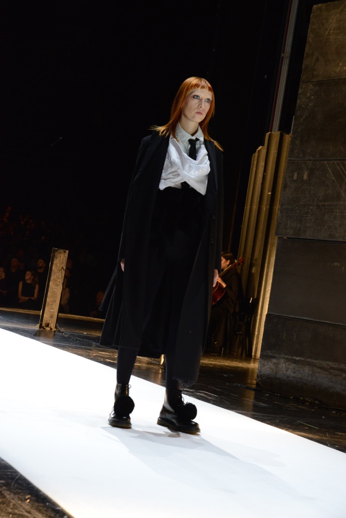 Berlin Fashion Week! #EMPÖRTEUCH – THE QUEEN of Berlin´s dark fashion style Esther Perbandt wowed the crowd during MBFWB with an outstanding runway show at Volksbühne. She is a designer, visionary, performer, master of ceremony and entertainer. Her new collection is a masterpiece! The designer chose to return to Volksbühne Berlin for a second time, magically attracted to the venue, which fits her like a second skin. On the stage of the memorable Bert Neumann, where the black and white films worlds of the twenties and thirties meet Buster Keaton, Dada, and George Grosz – Esther embeds her mix of present and future personalities – unconventional, confident, fragile, clear, energetic, somber and touchingly beautiful. We have seen many of our friends and KALTBLUT icons on the runway like photographer Florian Hetz, our very first cover model Lex Olsen, male model Sasha Marini, designer Herr von Eden, musician Romano and supermodel über-icon Vea von Lehndorff (aka Veruschka).