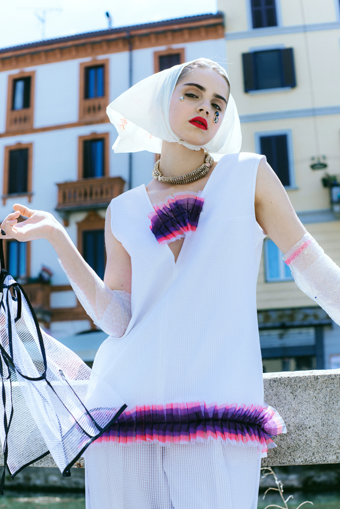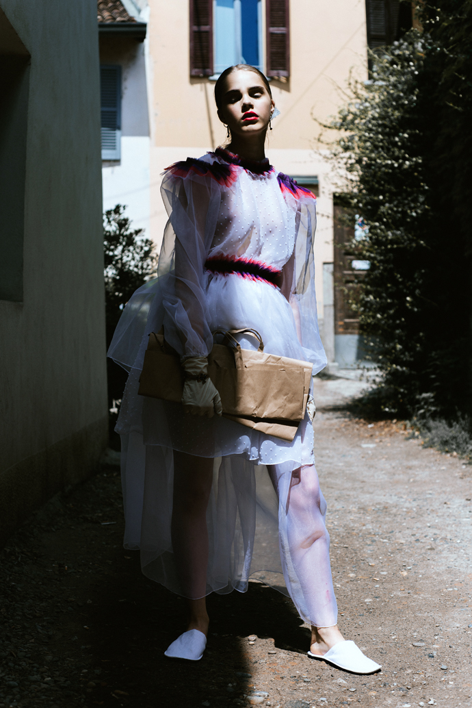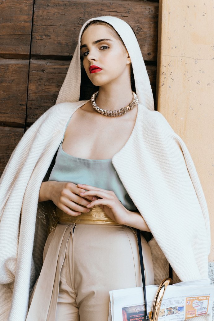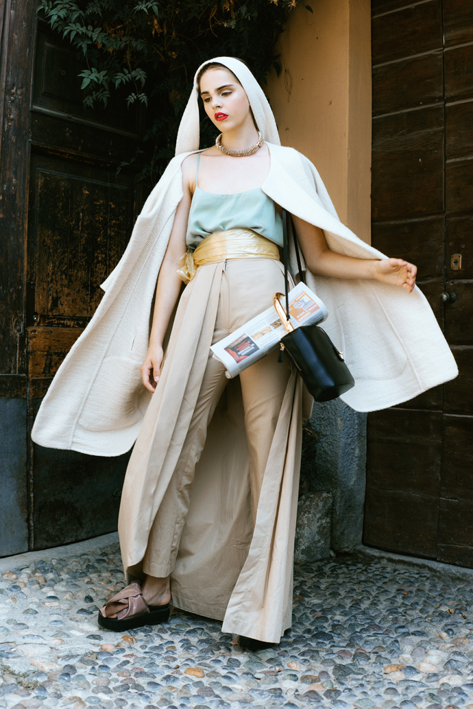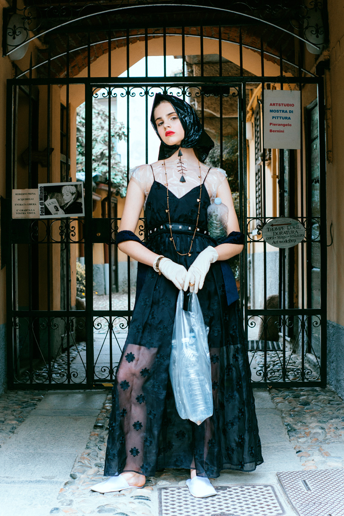 A KALTBLUT exclusive womenswear editorial. Photographed by Amr Ezzeldinn. Fashion Styling and Story by Vania Delvina. Model is Lera Anushkevich @ Boom Agency Milan. Make up by Carla Curione. The concept of “Bankrupt” tells a story of a beautiful young woman who spend most of her money for her closet and always tries to blend in the luxury society with every single penny that she have, the photoshoot captures her daily Sunday morning activity such as chilling under the sun outside of the apartment, throwing garbage, taking newspaper and just being completely oblivion and doing nothing all day after a well spent Saturday night. “Born in Jakarta, Indonesia. I’ve been dancing ballet for 9 years and studied literature for 2 years in Indonesia. I’ve lived in Paris, France to studied Fashion design and technology at International Fashion Academy and Graduated from Haute Future Fashion Academy in Milan, Italy for Fashion Styling and Communication. A Milan and Jakarta Based Fashion Stylist.” says Vania Delvina.