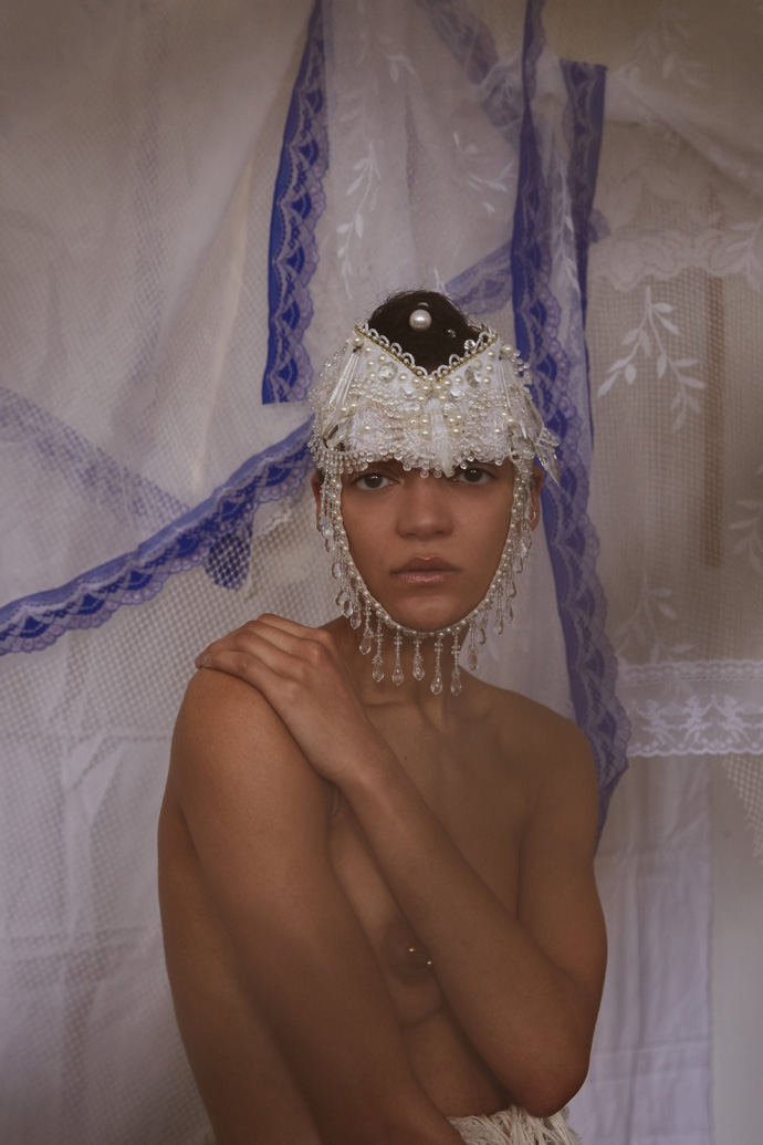 A KALTBLUT exclusive womenswear editorial. Photography and Set design by Eve Power. Model is Donnika Anderson signed to Nevs Models. Styling, Set and Words by Léa Federmann. Make Up by Sophie Cox. Hair by Shab Malik. ” ‘Brand new tradition’ editorial explores unapologetic black subculture merging traditional jewelries, modern accessories and a mix of both traditional and modern clothes. Feminity and sensuality can be perceived and represented in many ways depending on beliefs and history, every culture has it’s own way to embellish the body and that is what we wanted to highlight in this story. Therefore hairstyles were a major part of this editorial, just as they have a major importance in traditional black culture, aiming to create a sense of beauty. Hairstyles have historical and religious connections and have always been used to convey specific messages in society. The hair is the most elevated part of the body and was also considered a portal for spirits to pass through to the soul.