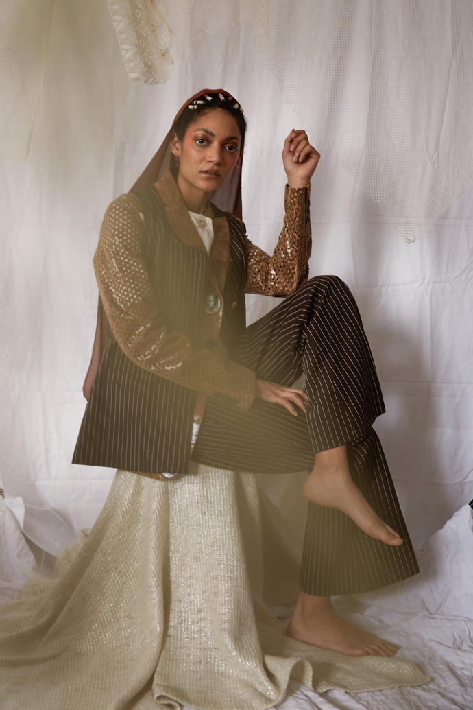 Women are now inspired by their own culture and history; they are no longer confined by the restraints previously set upon them by society as a whole- the broader perspective. Building identities based on their own personal culture and history, that reflects the journey between traditional and modern. When planning the shoot, we based the concept around Donnika because she embodies the idea of identity, strength & independence. She is visually inspiring and full of emotions, she is more than just a model and this was so vital for the shoot.” says Léa Federmann