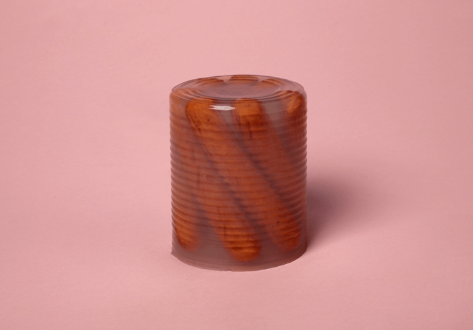 Kyoko Takemura is a Japanese conceptual photographer based in Berlin. Canned is a photographic series to reveal the unnatural nature of canned food. The foodstuffs were taken from tins, solidified and photographed. Takemura projects aim to explore the hidden truths in everyday life objects, such as food, the human body and the universe.