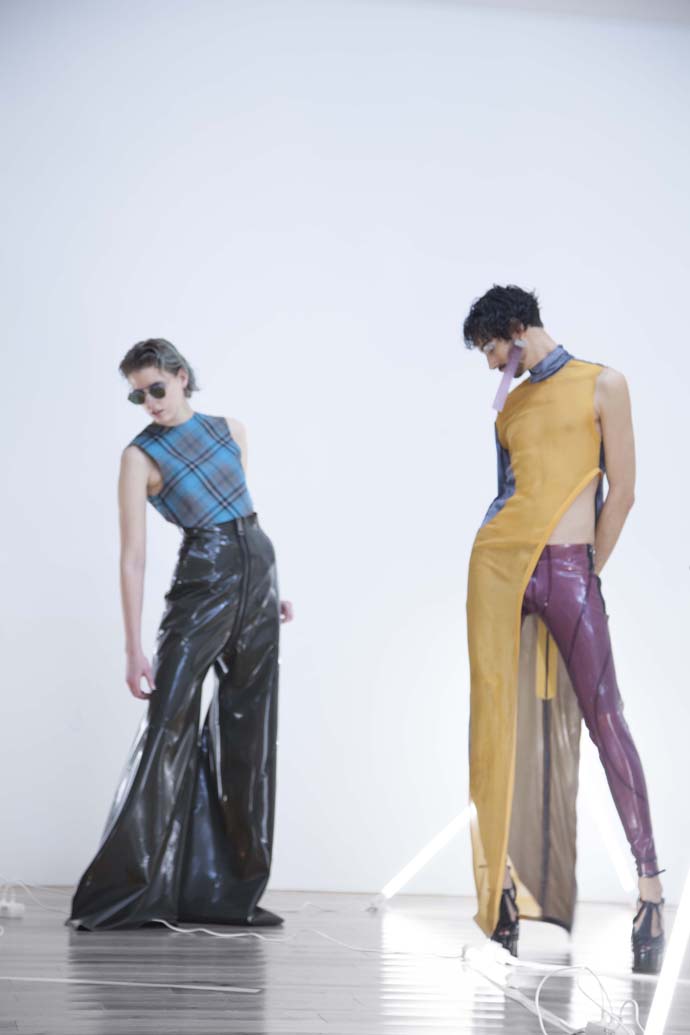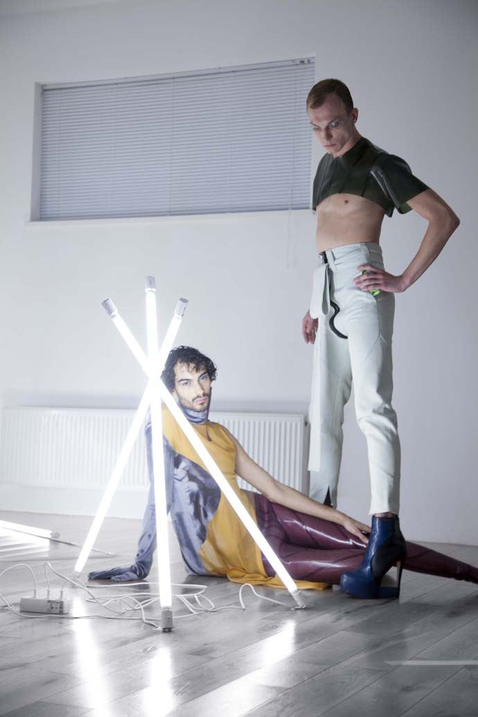 Using his technical background as a strong foundation to build on, he is currently developing his men’s and women’s wear graduate collection, which is deeply influenced by London’s Queer Performance Scene. With a desire to “[question] the terms of beauty, body and aesthetics” as key motivation, he wishes to convey vibrantness, freedom and emotion in the context of fashion as well as a new spectacular performance.