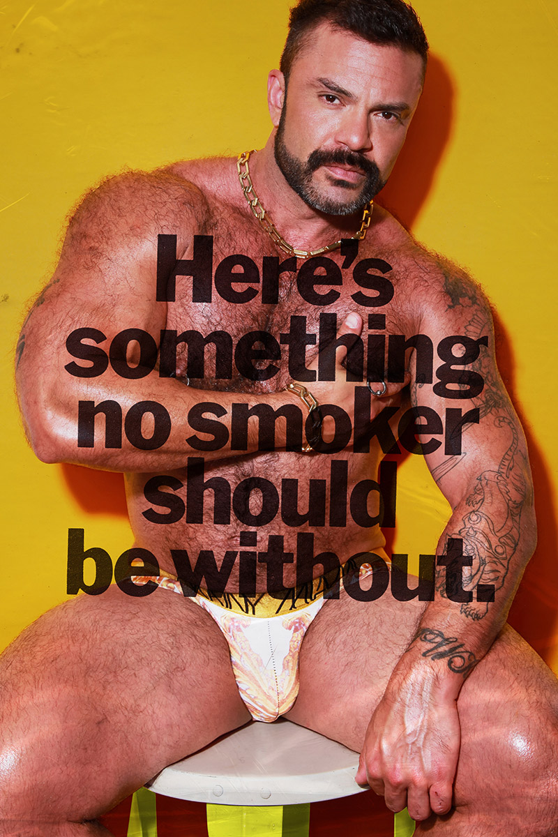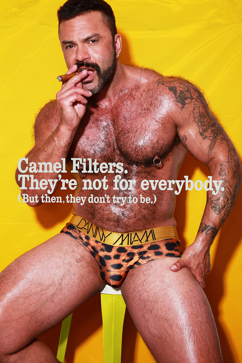 A KALTBLUT exclusive editorial. Photographer Karl Slater take’s direct inspiration from the adverts found in 1970’s Playboy magazine’s. Paying homage to the days where hyper musicality was celebrated and embraced. “Real men smoke Camel”. Modelled by Rogan Richards. Styling by Kennedy Silver using fashions by Danny Miami, Versace, Marco Marco, Garcon Model and more.