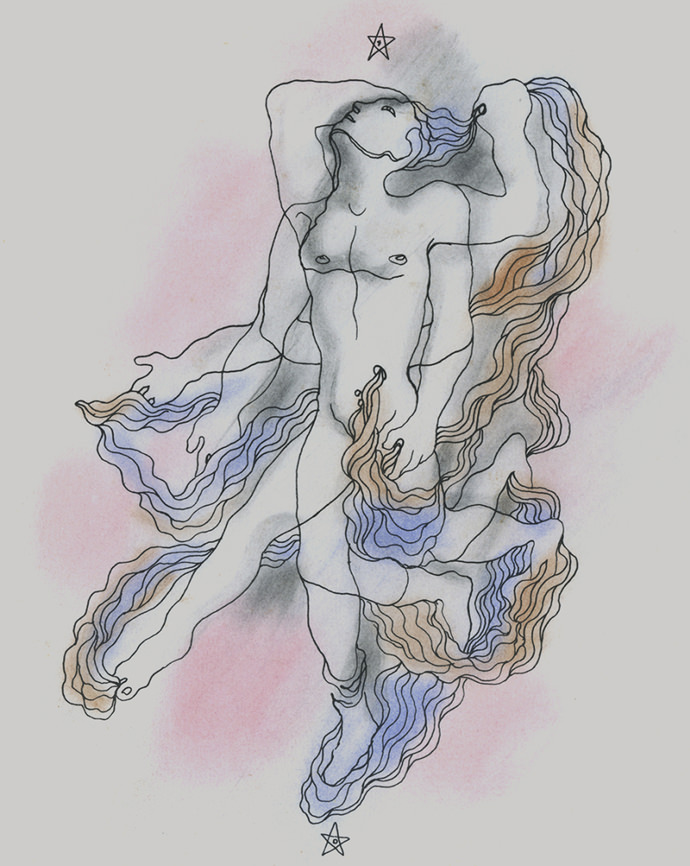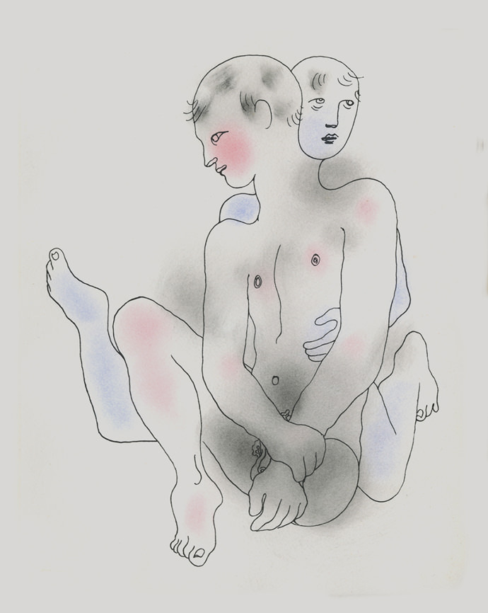 “I was struck by how these illustrations of hybrid lovers reminded me of my own photographic work dealing with the human body and its metamorphosis. Both erotic and troubling, they depict male fantasies of our time, in a tangle of bodies sometimes unidentifiable. They can be interpreted as a romantic idyll, as much as an erotic struggle, or, on the contrary, as an introspection.”