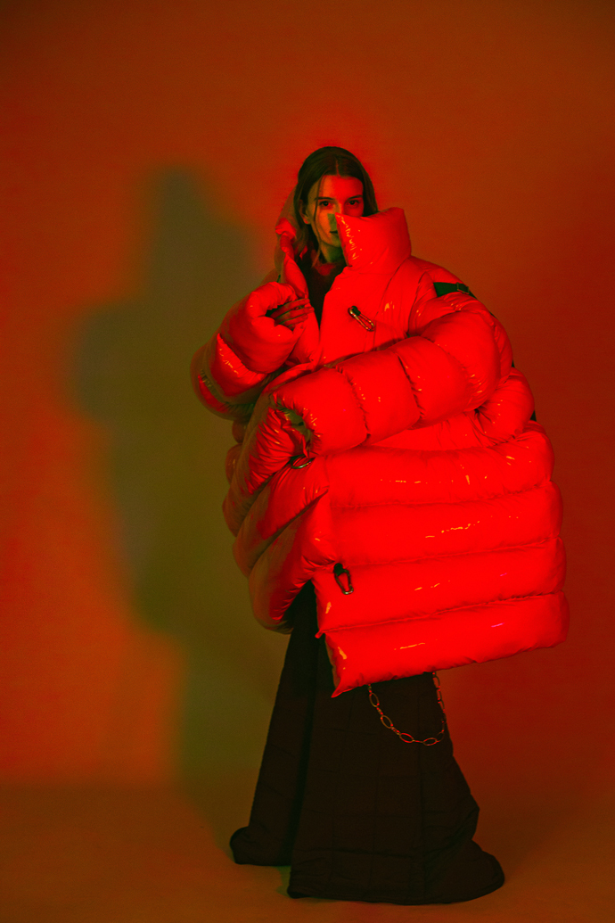 A KALTBLUT exclusive womenswear editorial. Photography by Jan Krueck. Model is Hannah Leonie signed at Cocaine Models. Designs by Sena Isikal and Leyla Yalcin. Styling and concept by Yannic Joel Hohaus. Styling Assistance by Sena Isikal. Hair and Make up by Chantiny Ly Wolf. “For this shoot, I’ve collaborated with photographer Jan Krueck and graduated designer duo Sena Isikal & Leyla Yalcin from Lift Off, whose collection is made for the hypothetic life on Mars in regard to multifunctional clothing like wearable outdoor sleeping bags or detachable sleeves. With this editorial we wanted to show the desire to escape from modern life, in regard to wearing this kind of clothing and shooting the act of feeling safe, private and able to escape in it.” says stylist Yannic Joel Hohaus
