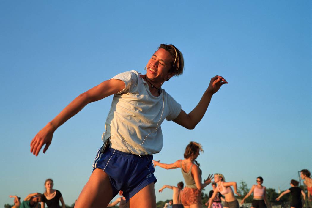 Diving deeper into Alvin’s universe, I continued attending his sessions online and, later on, in real life. In person, the sessions are more extended and spark a turmoil of emotions building up from a simple warm up into pure ecstasy. Participating in this practice has been extremely liberating and rather nostalgic. The playlist prepared by Alvin as well as his collaborations with guest DJs are strongly tied to disco, dance music and techno culture which, given the current clubbing hiatus in Berlin, worked wonders for many of us. However, this is not simply a format where one can dance or learn how to dance. Alvin’s passionate guidance in channeling our groove through movement meditation allows us the experience of embodiment, one beyond the physical and the conscious. Experts in movement and body work refer to “embodiment” as an awareness-based subjective aspect of the body. It is considered an umbrella term to the spectrum of body-mind arts such as yoga, dance, meditation and martial arts; also known as somatics, from “soma” — meaning “the body as perceived from within”.