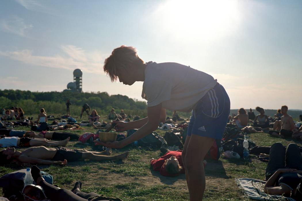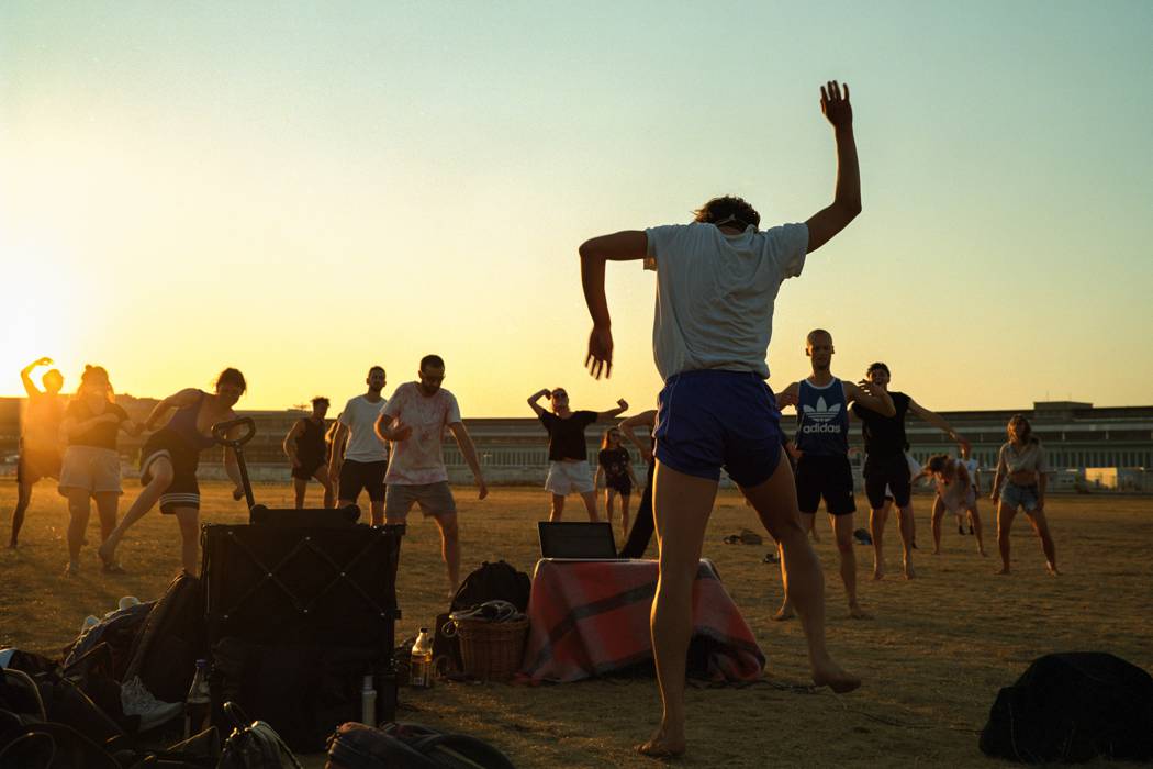When summer arrived, the local restrictions eased up allowing outdoor activities, so I was able to safely take this initiative to the parks of Berlin. The first session started with a group of around ten people in the Tempelhofer Feld [a former Nazi airport in the city centre, now transformed into a vast public park]. Then, by word of mouth, the support of my peers, and sponsorship by Soundboks who provided me with stage-like speakers, it rapidly grew into a crowd of over 100 people, who joined us in other iconic and really special outdoor spots, like Treptower Park and Drachenberg [man-made mountain consisting of debris from the Second World War].