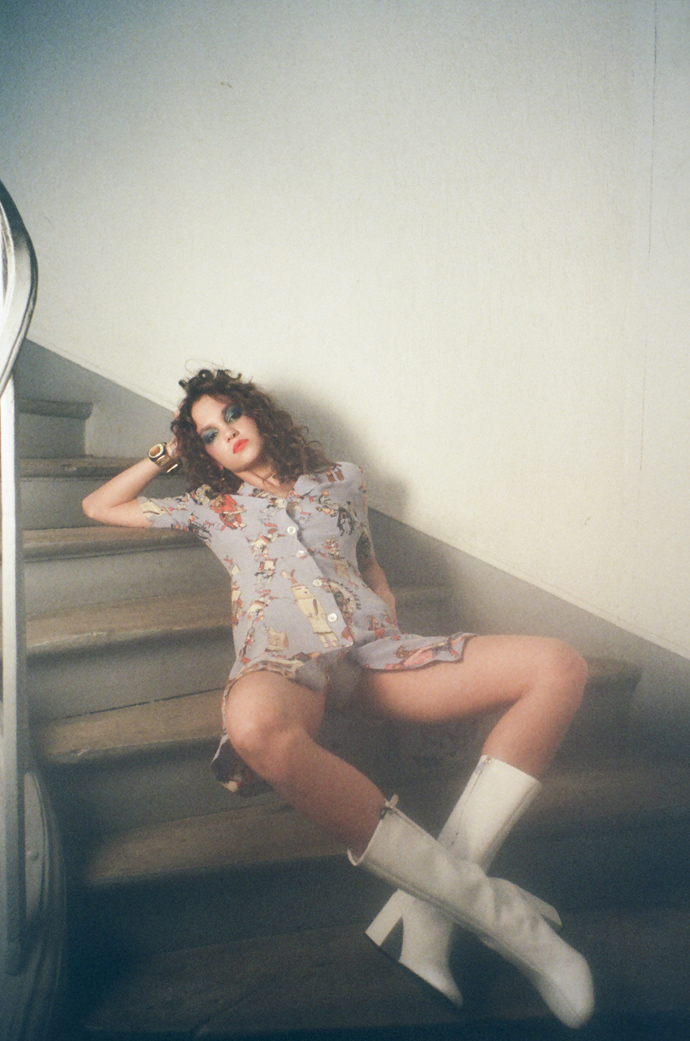 A KALTBLUT exclusive womenswear fashion editorial. This shooting was inspired by latest PFW. Ami Colberg a Parisian photographer captures model Maria Demina, styled with Celia Darling’s vintage Dior, Hermès, Lanvin collection and Fred&Paul’s unique creations. Hair & MUA by Maniasha. DOP is Jf Julian.