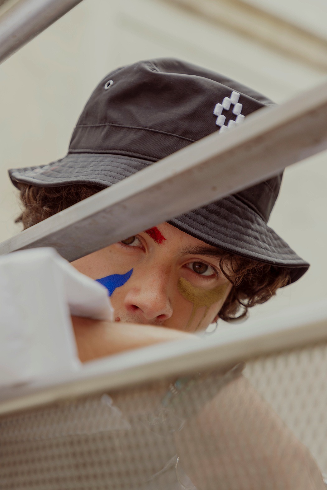 A KALTBLUT exclusive. Photography by Angela Buono. Model is Emanuele Cosmaro. Makeup by Gladys Calì. Styling by Maurizio Belloni. Fashion by Prada, Adidas, Dior, Urban Outfitters, Acne Studios and others.