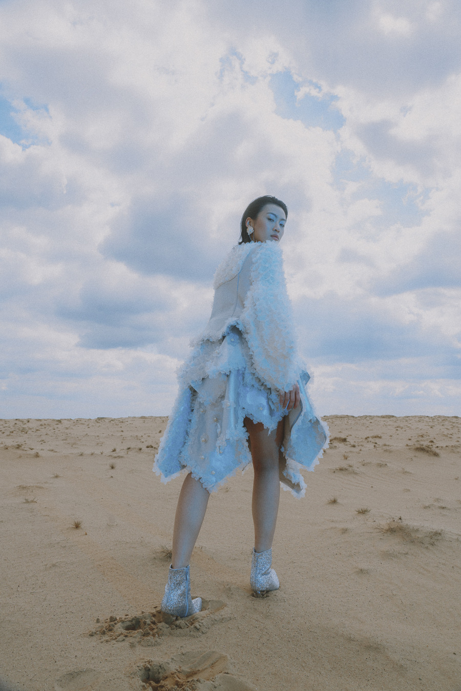 Introducing designer Jing Bao. Photography & Post Production by Levin Lee. The model is Huiru Hao signed at Modelwerk. Make Up by Lea Eiselt. As humanity’s knowledge of space grows, so does our potential to uncover more awe-inspiring wonders and enigmas within the vast expanse of the cosmos. The realm of science fiction often depicts outer space as a place teeming with otherworldly beings, exotic vistas, and advanced technologies that currently surpass our comprehension.