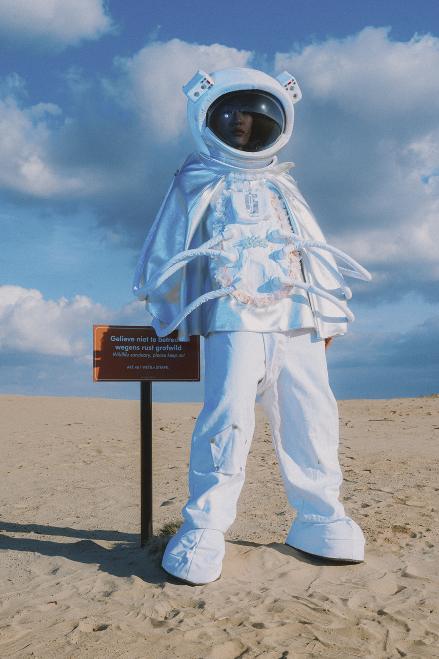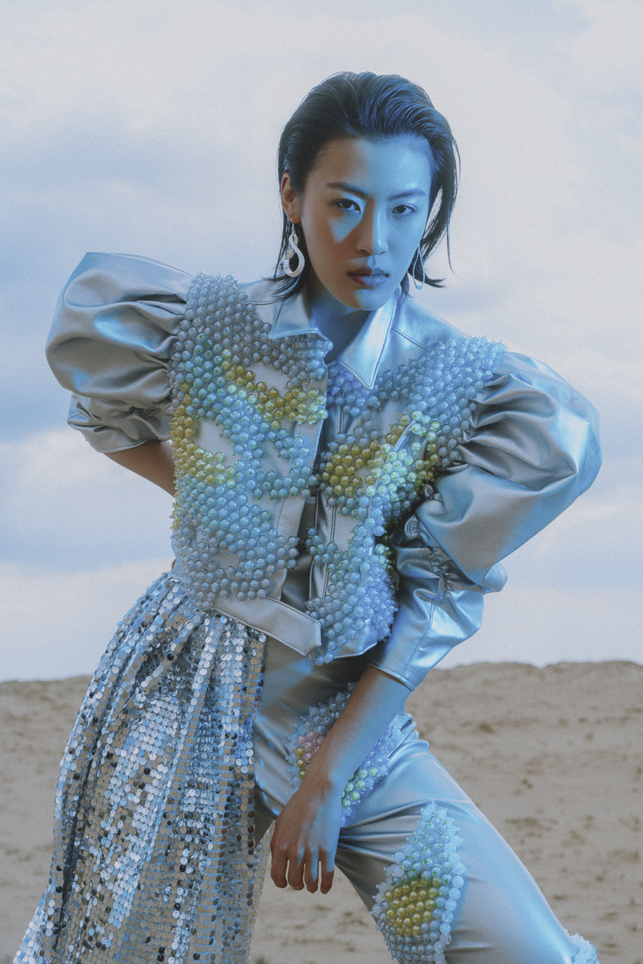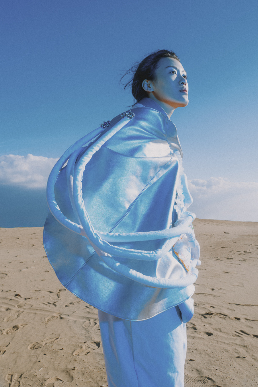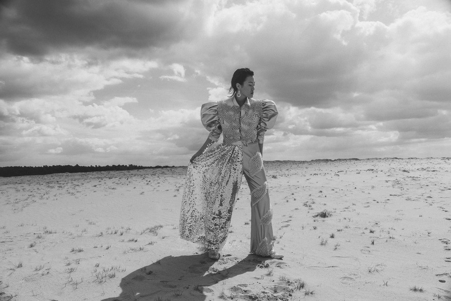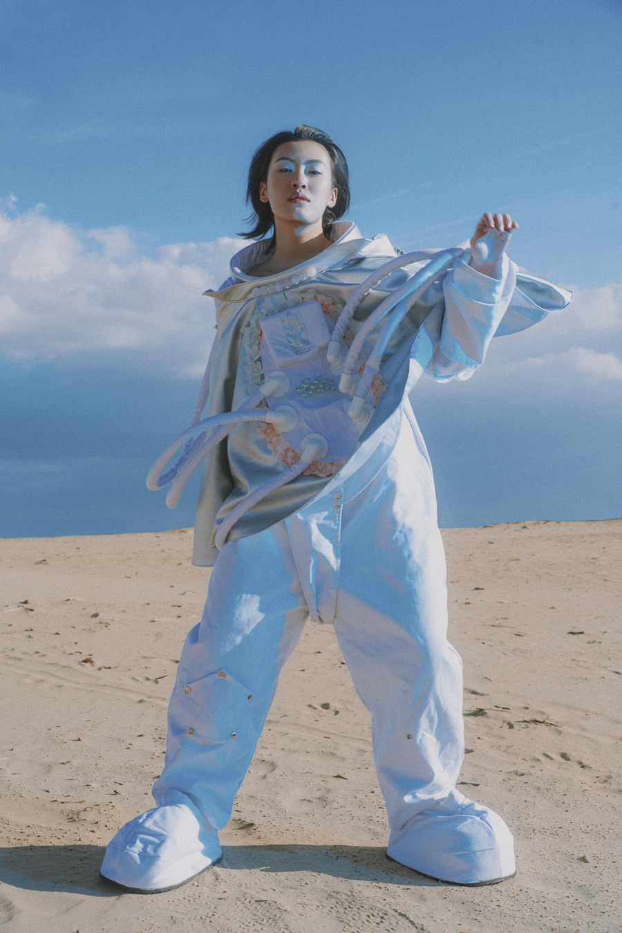 Introducing designer Jing Bao. Photography & Post Production by Levin Lee. The model is Huiru Hao signed at Modelwerk. Make Up by Lea Eiselt. As humanity’s knowledge of space grows, so does our potential to uncover more awe-inspiring wonders and enigmas within the vast expanse of the cosmos. The realm of science fiction often depicts outer space as a place teeming with otherworldly beings, exotic vistas, and advanced technologies that currently surpass our comprehension.