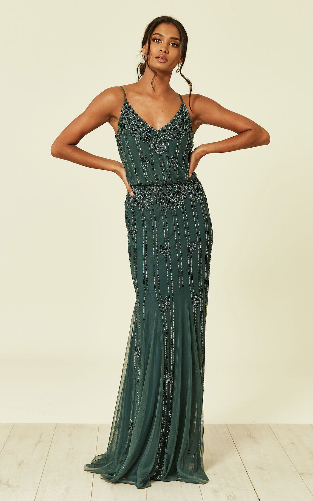 If you are looking for an elegant maxi dress that will make an impact, then the Emerald Green Keeva Maxi Dress is the perfect choice. With adjustable straps and a flared hem, this embellished maxi dress is perfect for a wedding, a night out or even your work Christmas party. If you are headed out for a fancy evening meal with work colleagues, this is a dress that is sure to impress.