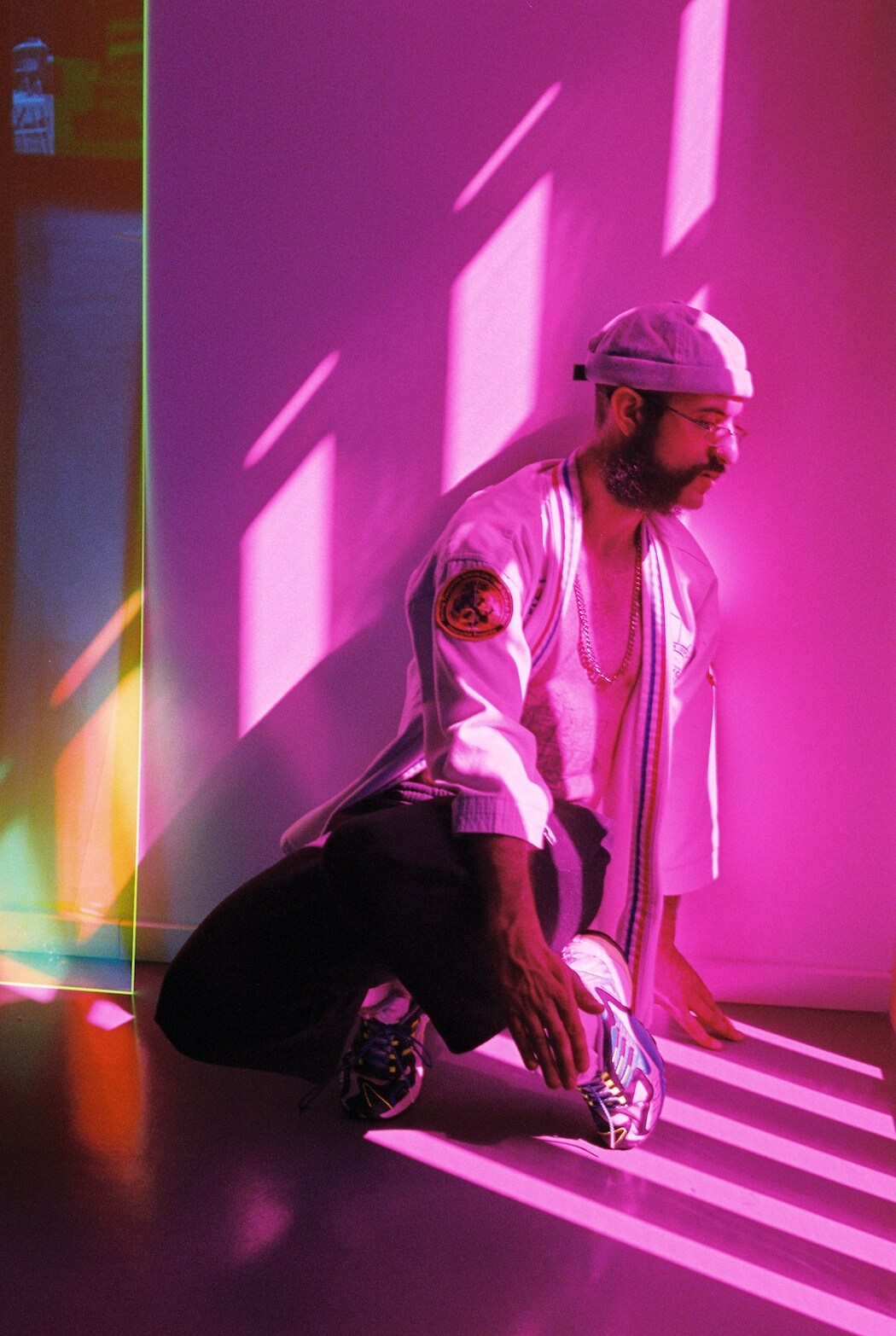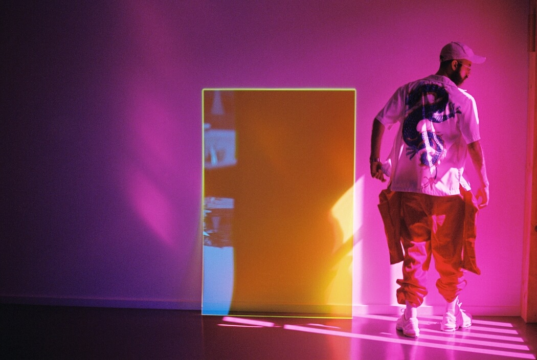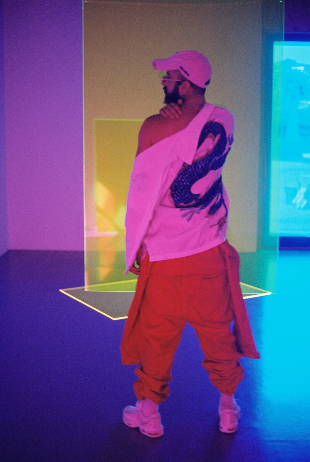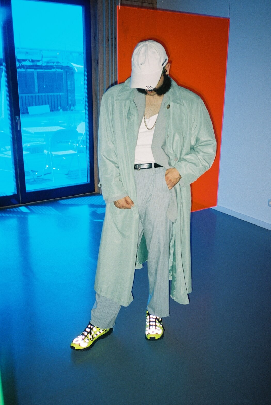 “We are in the year 3001 till yesterday. There is barely any natural light left. Our homes, buildings and cities are lit up by neon lights. He has returned.” Photography by Nuša Hernavs. Model and stylist is Jordan Borg. Art direction by Nuša Hernavs and Jordan Borg. Installation art in the background by Zora Kreuzer. A KALTBLUT exclusive.
