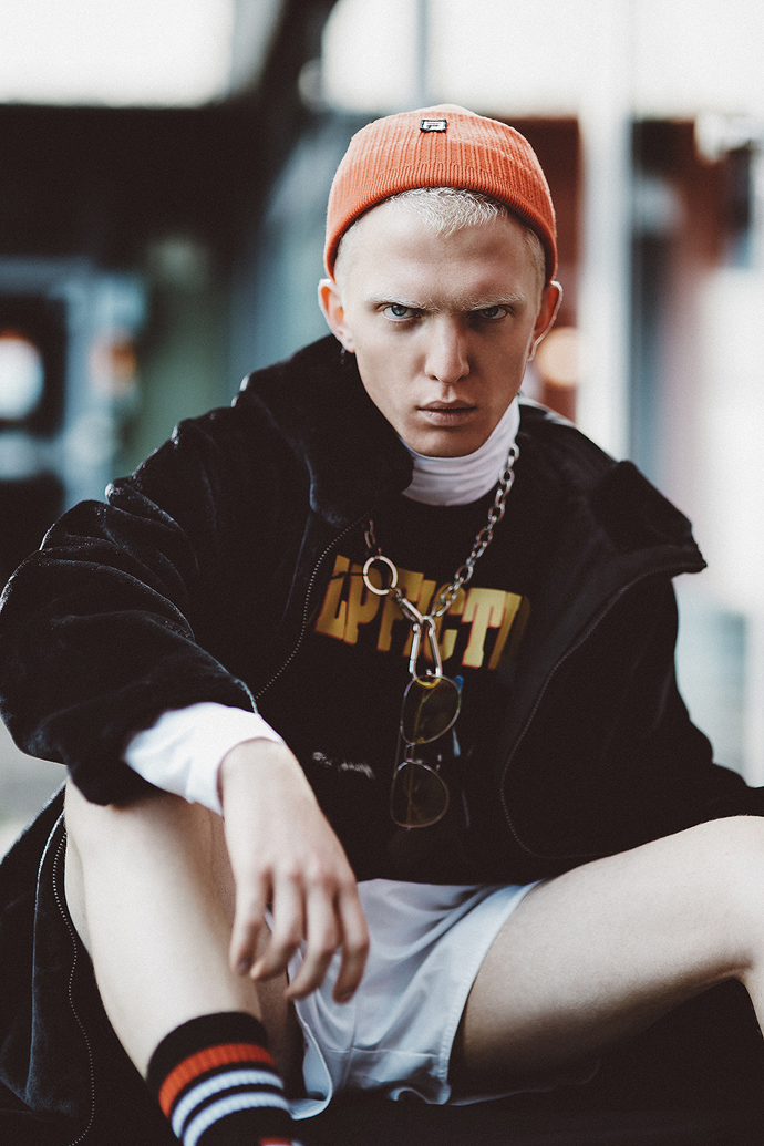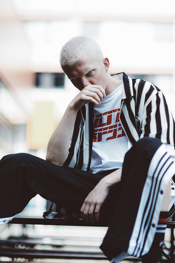 A KALTBLUT exclusive menswear editorial. Photographer Jennifer Harnack captured Alexander Ostojski signed to IZAIO Management for us. Stylist Martina Wrobel worked with fashion from Forever21, Adidas, Asos, Fila, Ace Tee x H&M, Champion, Weekday, Urban Outfitters, Monki, Nike amongst others.