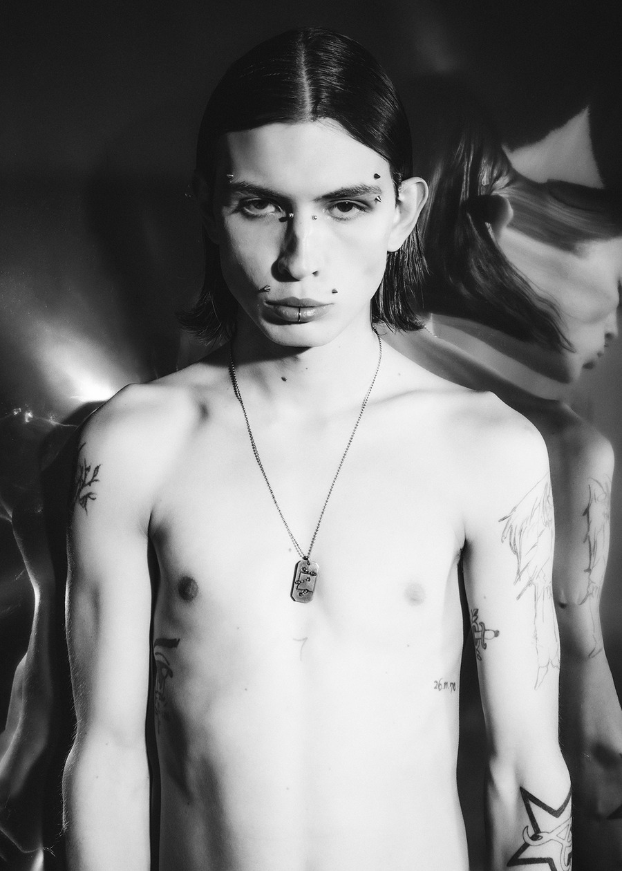 A KALTBLUT exclusive. Photography by Chiara Toki. The models are Josy, Anton and Maella. Make up by Dana Pribanović. Styling by Laura Hämmerle, Julia du Plessis, Paula Kiessling, Inaara Cigdem and Kyra Feiereisen. Fashion by NO/FAITH STUDIOS, NON-SEN SE, VEYIA BERLIN, HUGO BOSS, ARCHIVE D‘ACCRO, GMBH, PURMAN JEWELRY, FALKE, HUGO.
