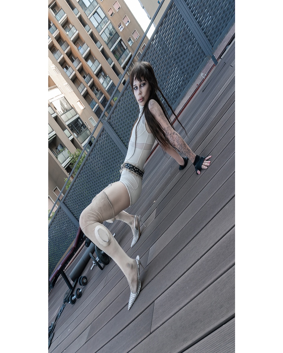 In collaboration with Milan-based artist Arisha, this editorial explores the contrast between spiritual depth and urban surface. The series presents cleaner, dreamlike visuals that resist melancholy while reaching toward a heightened sense of presence, creating tension between sacred motifs and the everyday surroundings of Milan. The cinematic postproduction process included 3D sculpture creation and particle simulations in TouchDesigner and After Effects, with carefully crafted transitions using distortion and glitch techniques. 3D face tracking was used to animate symbols beneath the skin, blending realism with surreal narrative elements in a layered visual language.