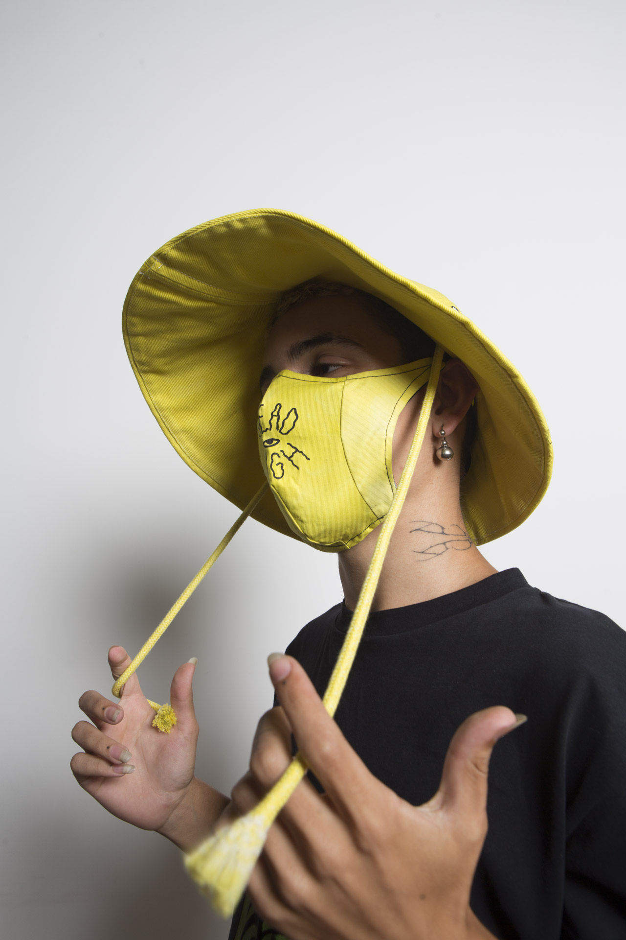 We had to move into isolation mode, in that period of time when people were consuming fashion mainly through their pyjamas – I stopped all my brand’s activities and shut the lights in my studio for a month. Only when I realised that the design industry must react somehow to this surreal reality and with the encouragement of a friend – photographer David Havrony I regained back my mojo to recreate 5777’s Isolation SS collection. A Head&Wear collection that features Illustrator’s Nadav ‘Machette’s original Corona inspired silk-printed images, hats, masks and escapism. Made in TLV” *aner5777