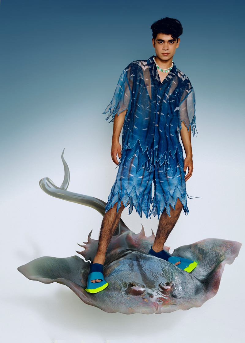 #Lookbook – For the new S/S23 collection, 8IGB takes us underwater with fish, especially shark-inspired designs. Using materials from activewear to chiffon and sequences, 8IGB’s designer created a balance between fluidity and stiffness to bring us into his new fantasy.
