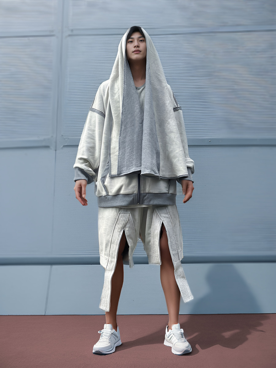 Imagine the heady mix of scents, the seductive intimacy of shower steam, and the uninhibited presence of nudity—these elements are masterfully woven into each piece, creating a compelling sensory experience. From sweatpants fused with underwear to kimonos redefined as denim pants and hoodies, each item challenges conventional boundaries. Oversized, rigid collars elevate regular sporty and urban attire into bold, statement pieces.
