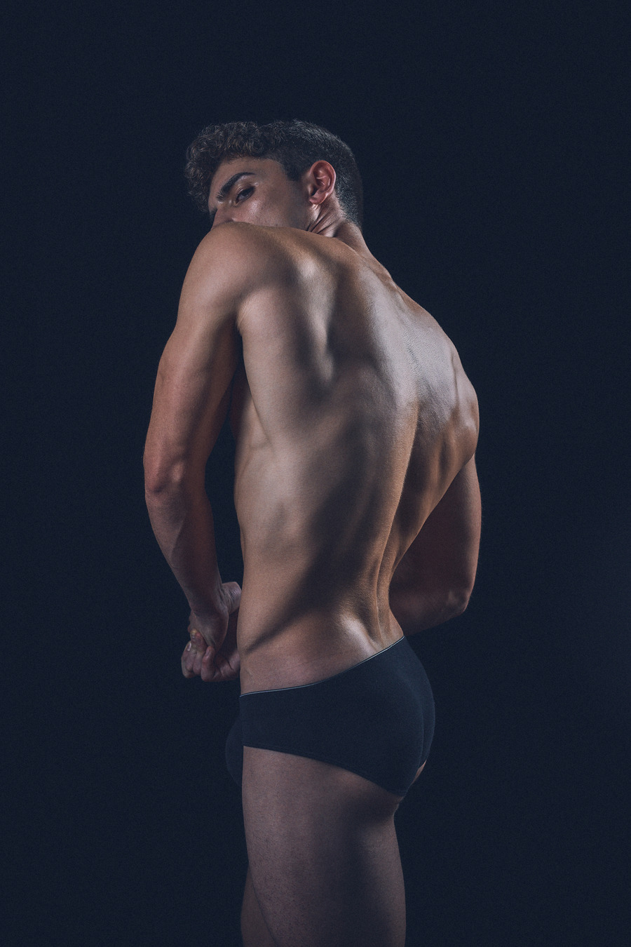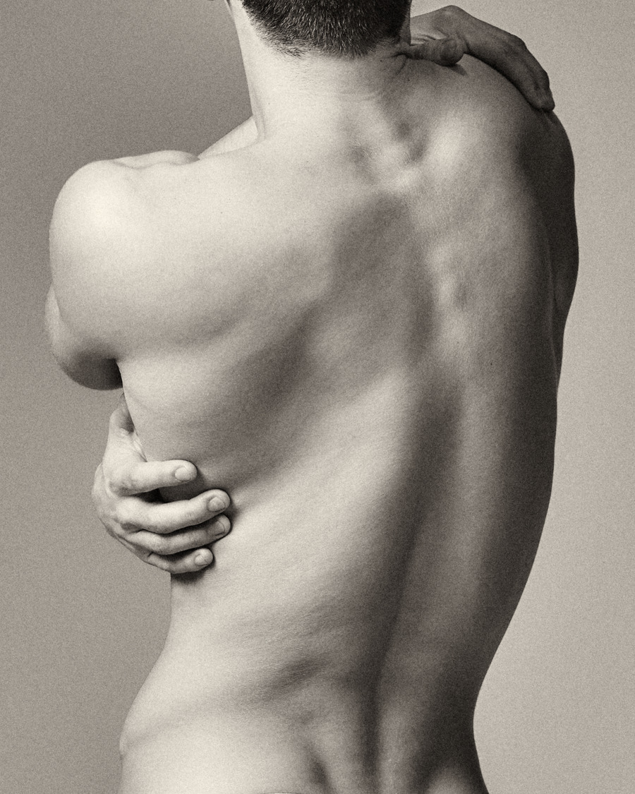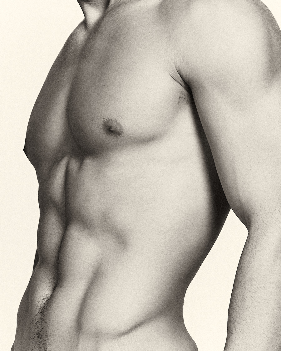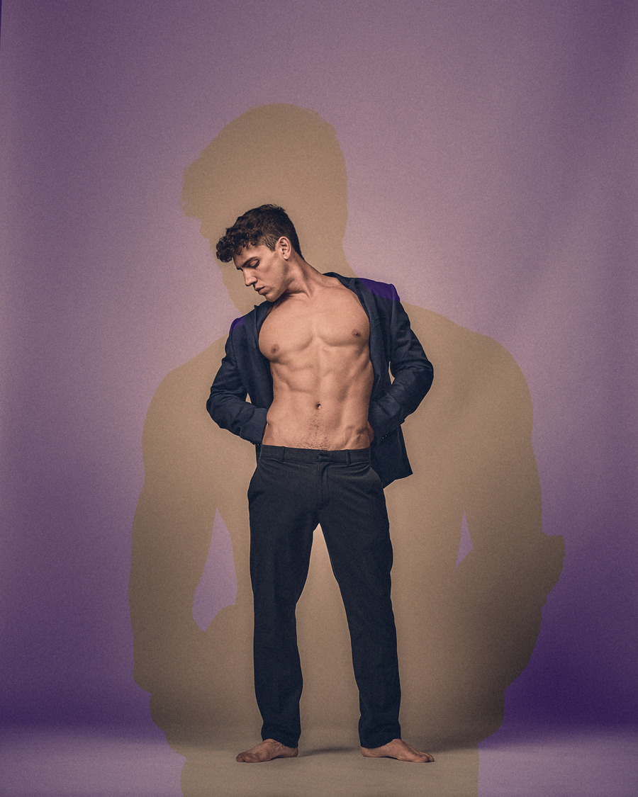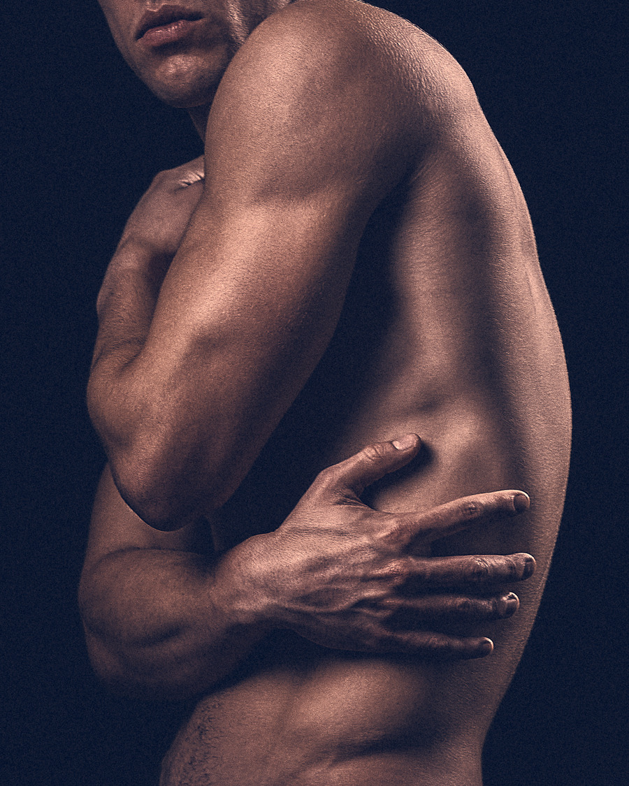His classical, honed physique and subtle yet powerful gestures and expressions provide the corporeal portal for moments of resonance within this time-suspended dreamscape. Andriel becomes a gentle yet masculine manifestation between consciousness and dreaming, in which the light and shadow, reflected off his form, shape an ecstatic sculptural moment.