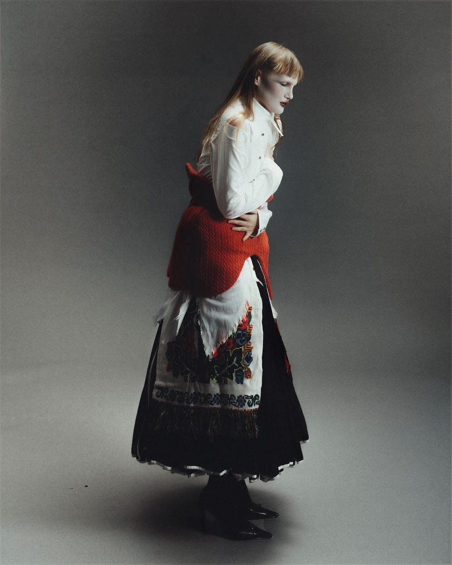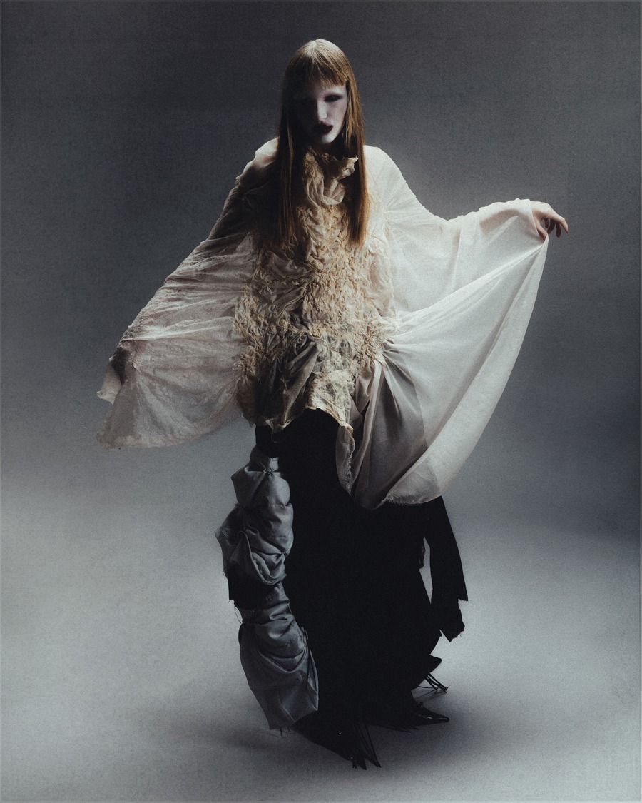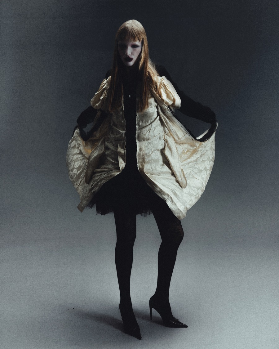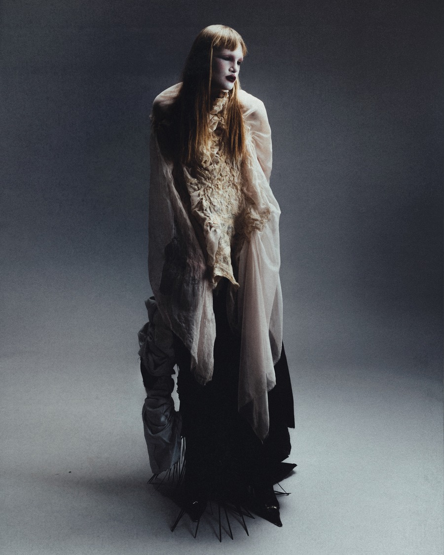 A KALTBLUT exclusive editorial inspired by the brave concept of rebellion which has guided continuously the imagination of some of the most iconic fashion designers. It represents a form of rebellion, taken on human form by a strong and bold woman, intertwining aesthetic elements from the punk, gothic and religious world. This fusion of styles portrays an indomitable vision of a woman who defies conventions. Photography by Dalila Slimani. The model is Francesca Anastasija Telia. Make up by Hejun Shi. Styling by Giulia Viani using Maria Chiara Tempera, Daniela Zhang, Giuliana Fraccalvieri, Bogdan Salau, Gabriele Celoria, Archivio Contessa Miseria, Archivio Lacouture, and Archivio PWC.