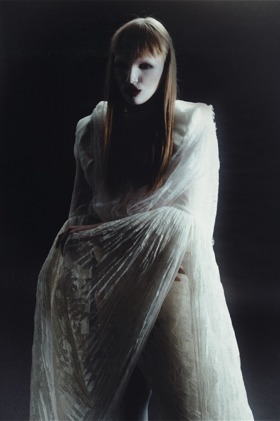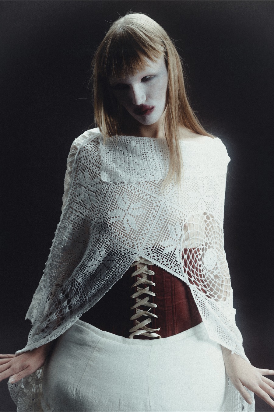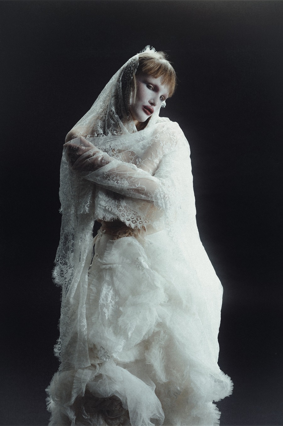 A KALTBLUT exclusive editorial inspired by the brave concept of rebellion which has guided continuously the imagination of some of the most iconic fashion designers. It represents a form of rebellion, taken on human form by a strong and bold woman, intertwining aesthetic elements from the punk, gothic and religious world. This fusion of styles portrays an indomitable vision of a woman who defies conventions. Photography by Dalila Slimani. The model is Francesca Anastasija Telia. Make up by Hejun Shi. Styling by Giulia Viani using Maria Chiara Tempera, Daniela Zhang, Giuliana Fraccalvieri, Bogdan Salau, Gabriele Celoria, Archivio Contessa Miseria, Archivio Lacouture, and Archivio PWC.