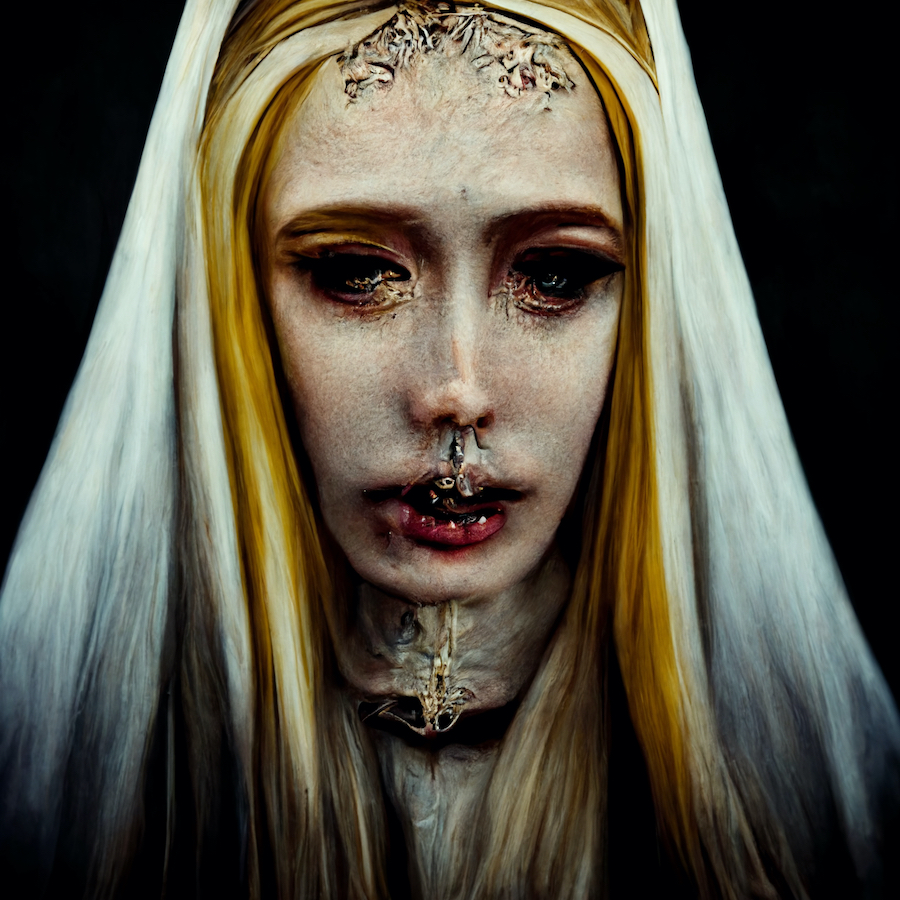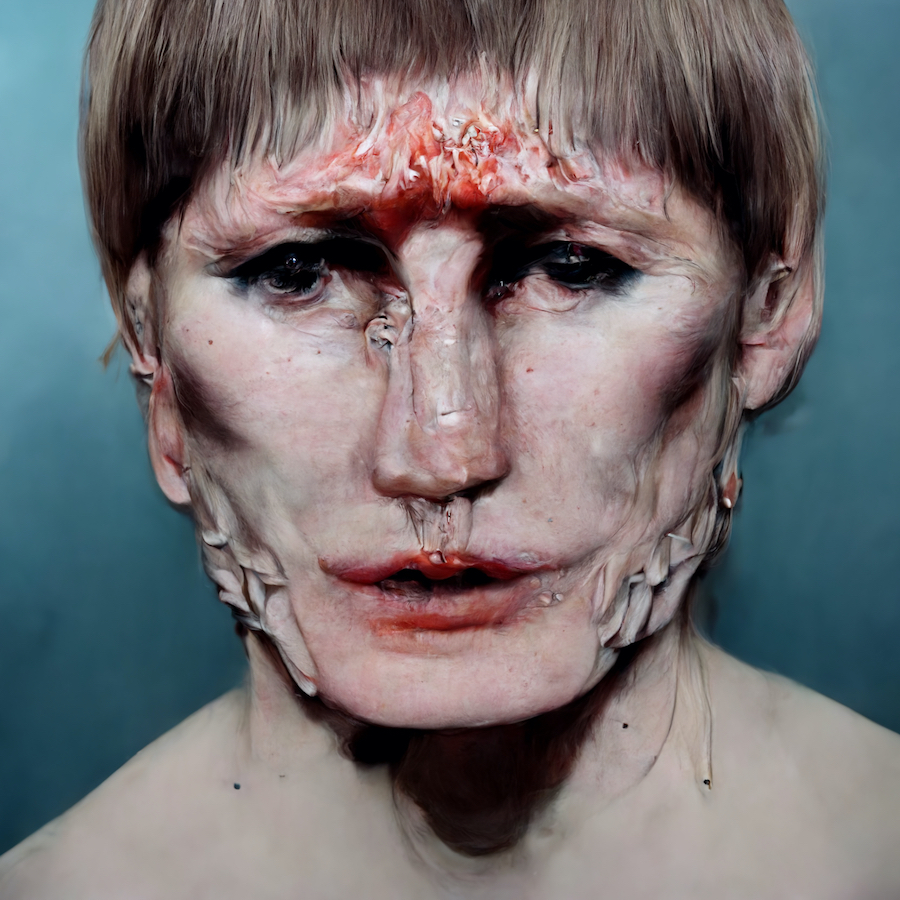 A declaration of love is constantly saturated with violence. That kind of violence contains multitudes. Multitudes that surround a portrait yet to be created and that need one to be freed from reality. AI is not here to help, she is generating strikes in time.”