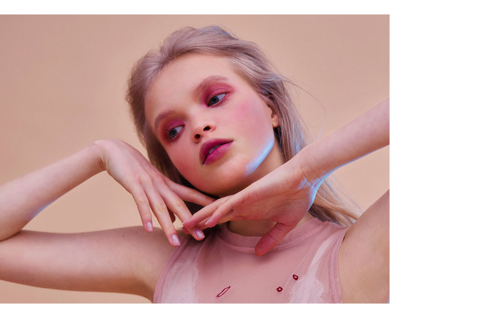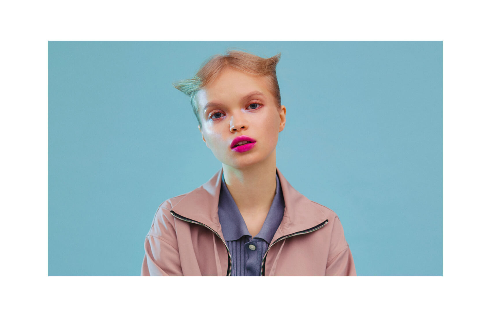 Nastya expresses her two-facades: a daydreaming sheep that has strong eyes with metallic purple-red colour, a little fox with messy over lip yet in the innocent atmosphere. What do you see of her inside out?