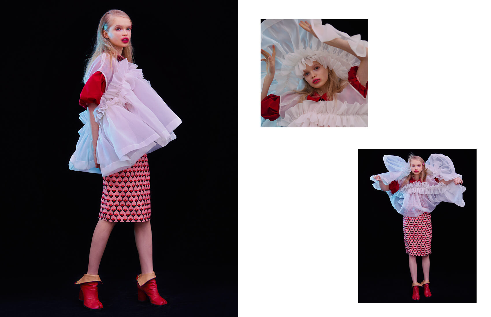 “This KALTBLUT exclusive story was created with a team based in Tokyo and NY, now easier to connect with talents anywhere in the world. We feature energetic Japanese designer brands including Dressed Undressed, Sakayori, Written Afterwards, Belper and Sho Kurashina, with shoes from Comme de Garçons and Sacai. Photography by Kentaro Minami.”