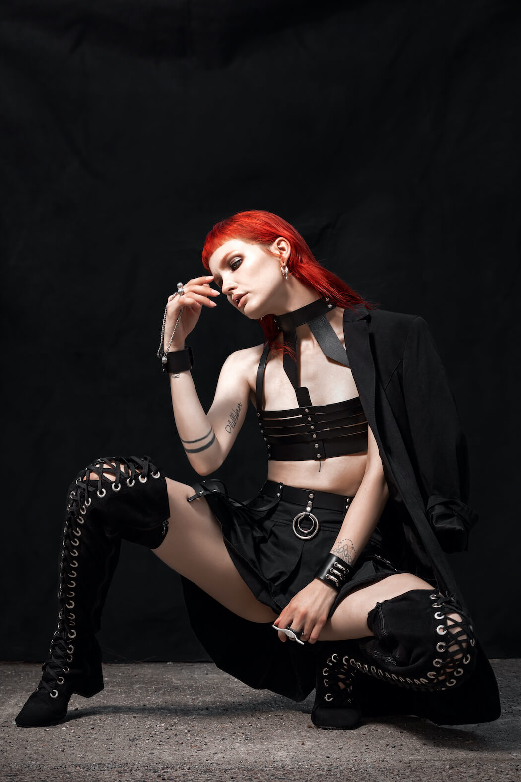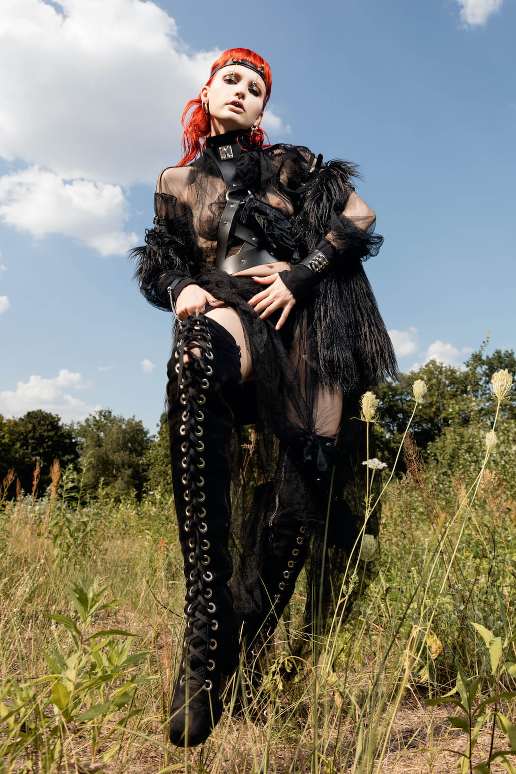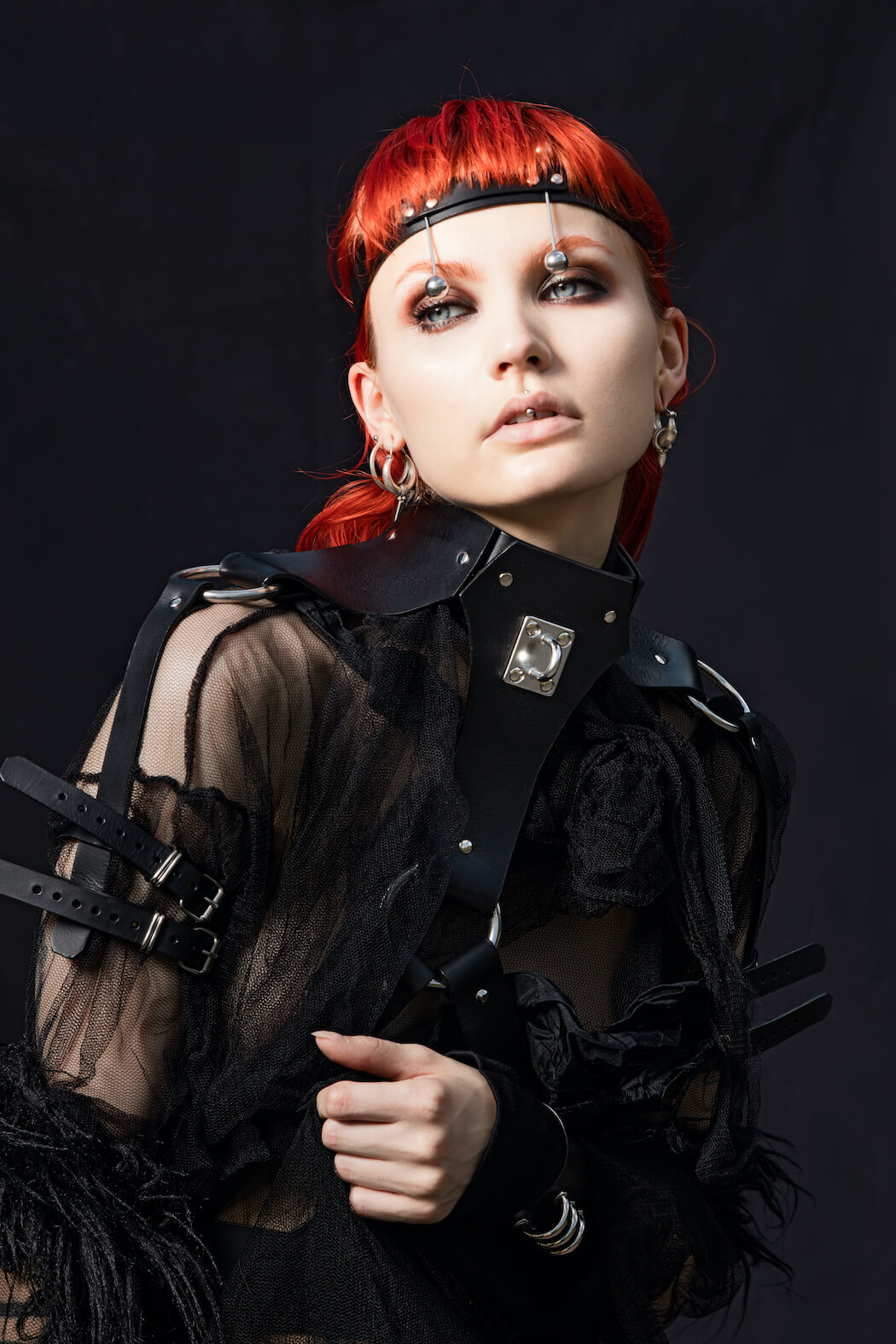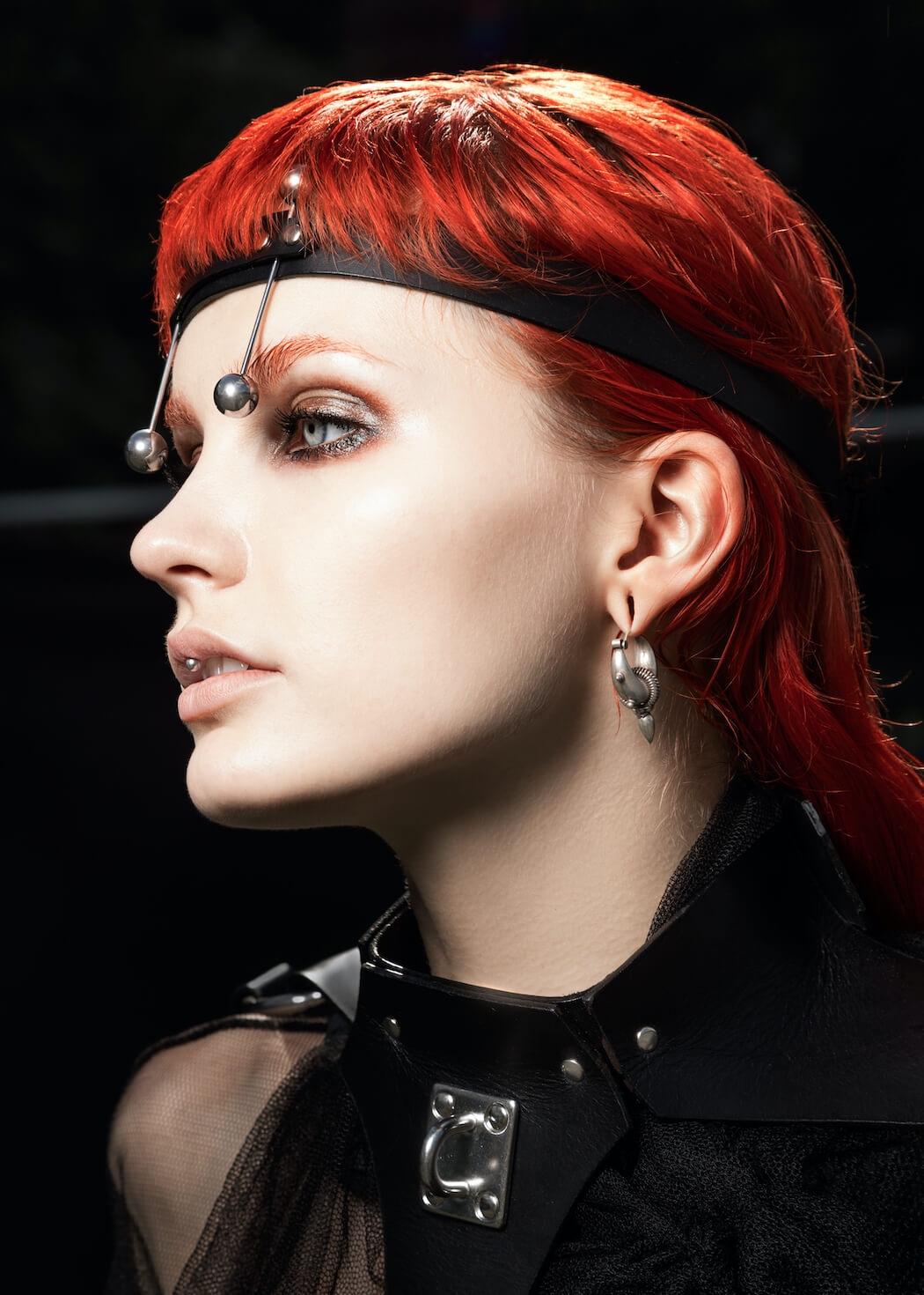 A KALTBLUT exclusive womenswear and accessories editorial. Model is Alexandra Johansson. Photography by Cyclo. Make up by Leong Lomann. Styling by Nina Kharytonova using accessories by Perlensau. Fashion by NoirMorphosis and Fuenf by Musina.