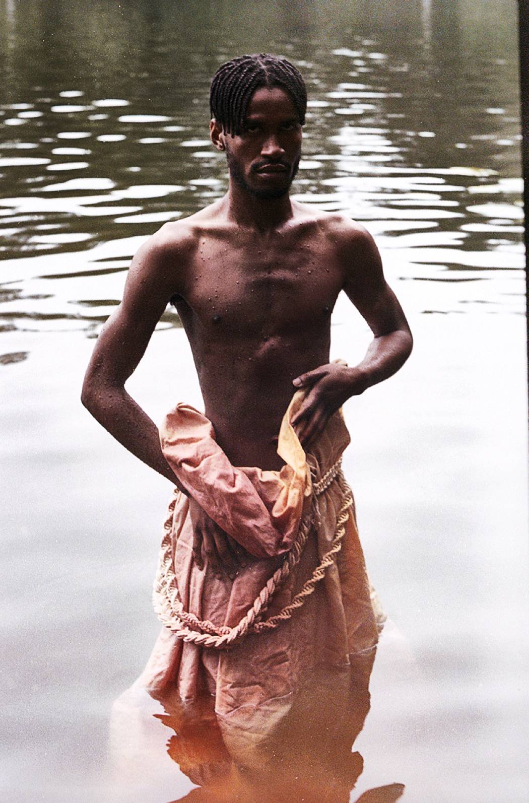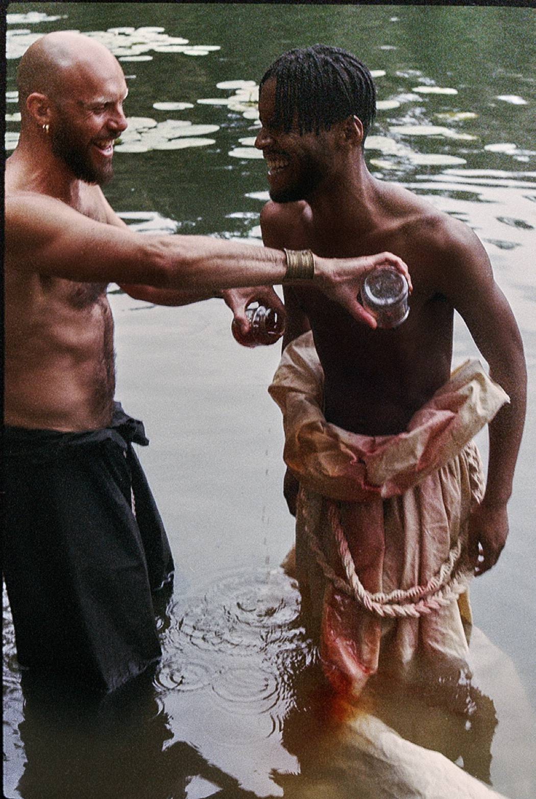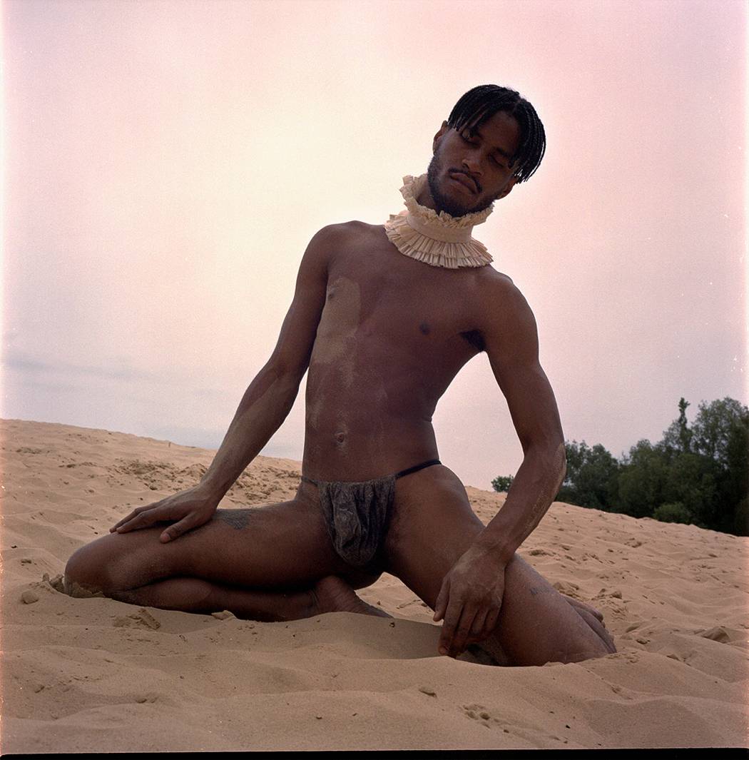 I think it is irresponsible, redundant, and counterproductive to create anything at this time without a strong focus and consideration for its environmental and social impact. With this concept in mind, I wanted to show my creative process in harmony with nature. It was a joyous collaboration between the photographer Tomàs Eyzaguirre, models Nayme, Joachim Perez, and myself. A great synergy was formed through creativity, joy, queerness, and being in touch with nature. I really wanted this collaborative energy to be seen in the images using a documentary lens rather than an editorial aesthetic.