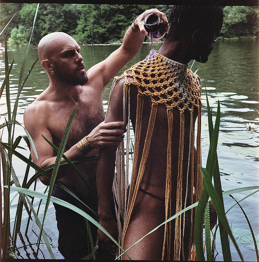 Artist Jay Barry Matthews teamed up with models Nayme and Joachim Perez to create this beautiful art piece. Including nature as a whole, Matthews is allowing us in this live clothing creation, under the eyes of photographer Tomàs Eyzaguirre.