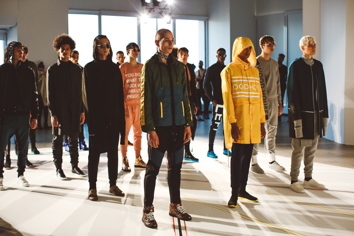 Wood House´s last collection was quite conceptual. The Seoul-based, American designer who served as an executive officer in the U.S. Army — had offered an Art Deco-influenced lineup in an array of forward silhouettes. But now he wants to make things more palatable for the male of today. “I usually use ephemeral concepts to create my collections,” Woodhouse said. “But this time I looked out of my window and thought, ‘I want to design for the guy right now.’”