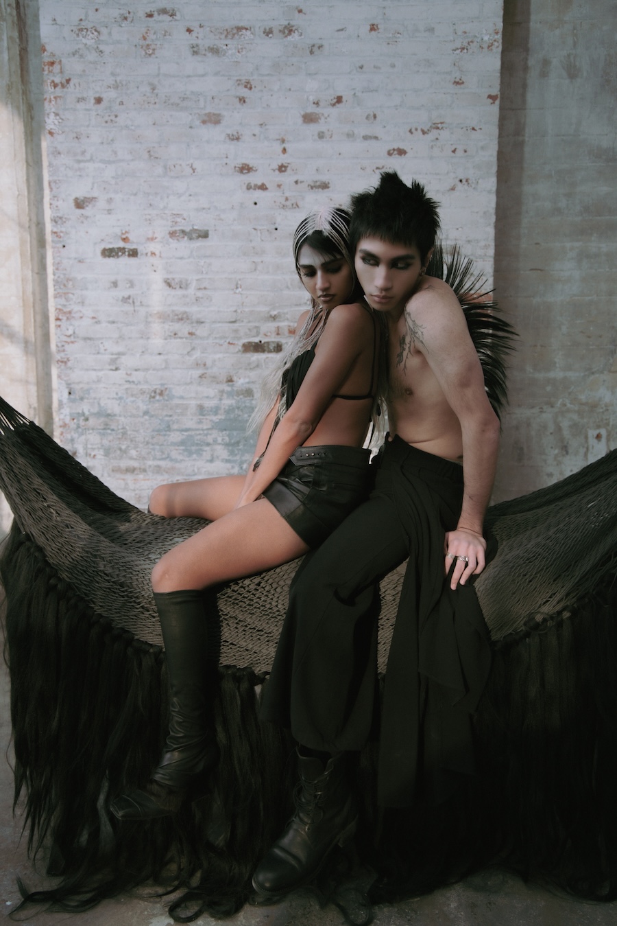 Through sculptural silhouettes, embodied movement, and tactile textures, two figures navigate the tension between discipline and wildness, awakening a longing for what has long been nesting within them. The project unfolds both as a fashion editorial and a short fashion film, expanding the narrative through motion and atmosphere.