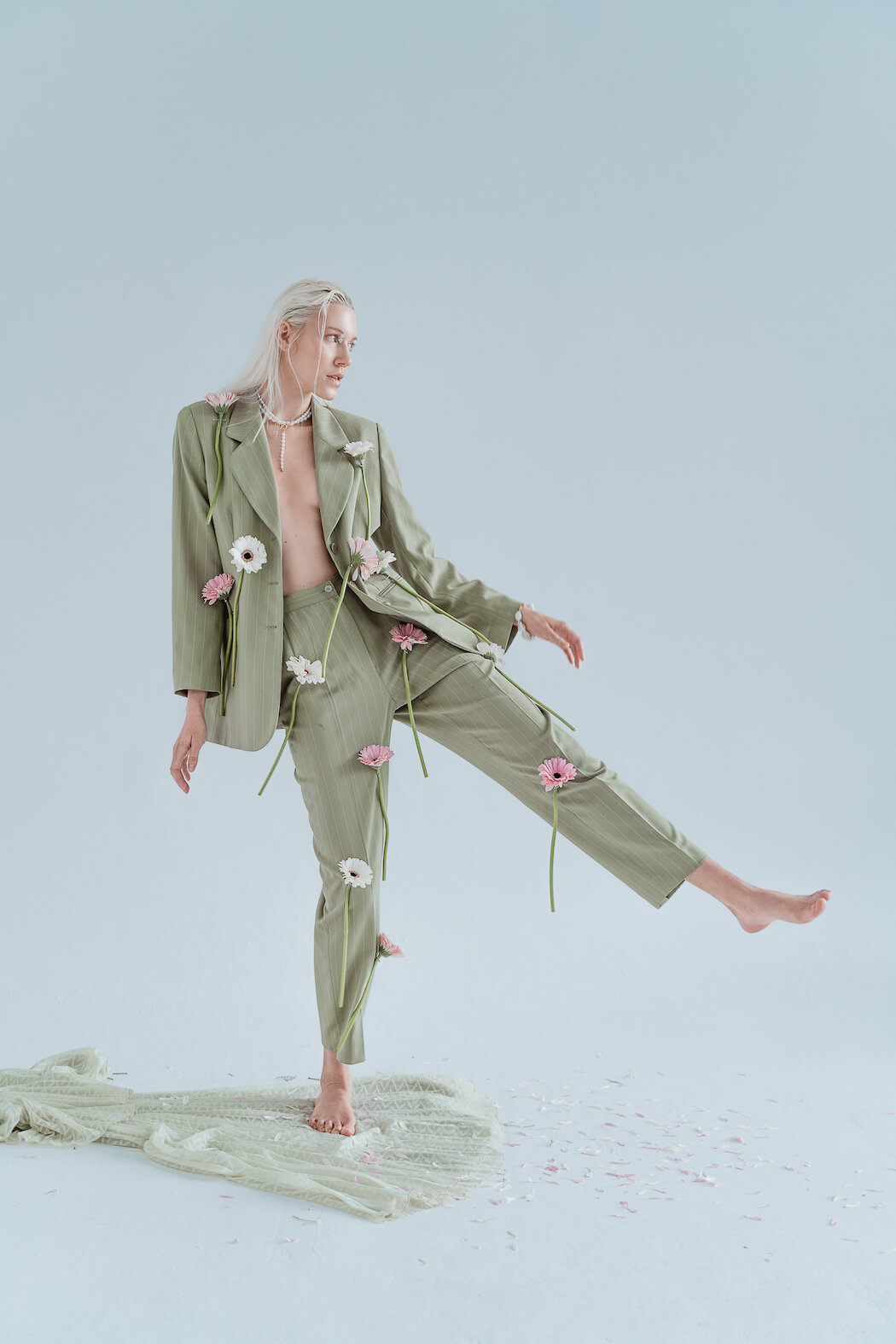 A KALTBLUT exclusive. Photography by Wiktoria Radecka. Model is Joanna Kocyla signed at Gaga Models. Makeup by Dominika Godziemba. Style by SOEYE. Brands are Stag Jewels, Oho Design, Aleksandra Kaszkowiak, Zara, vintage suits.