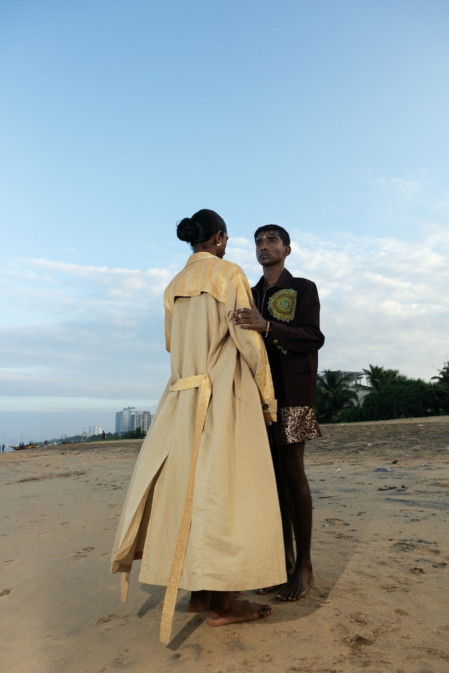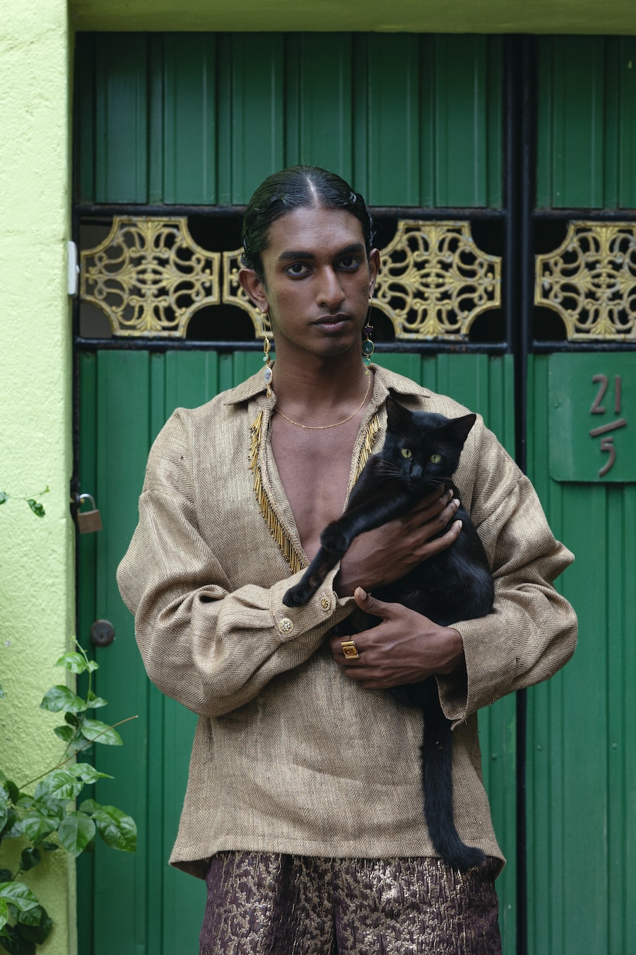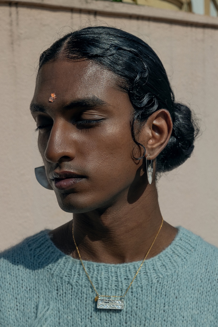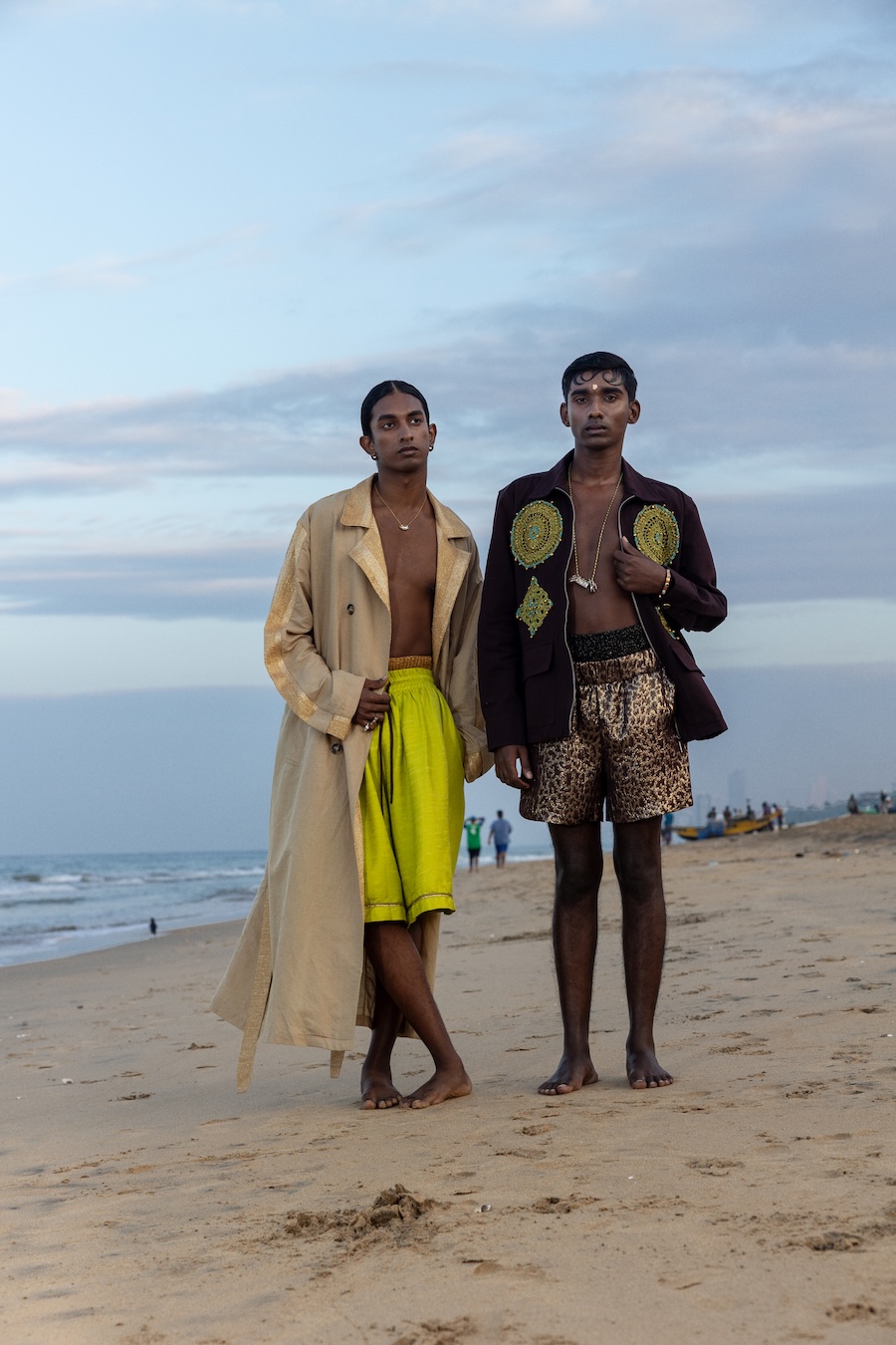 „This series is a celebration and braiding together of serendipitous chance encounters from Sri Lanka to Berlin as a nostalgic reminder that everything here is divinely connected.“ Photography and Art Direction by Gregor Seifert. Creative Direction and Styling by Tara Pascale Germani. The models are Ziha Karunaratne and Tharshanthan Thurairethinam. Hair & Make Up by Sharine Gunasekera. The fashion brand used is Amesh. A KALTBLUT exclusive.
