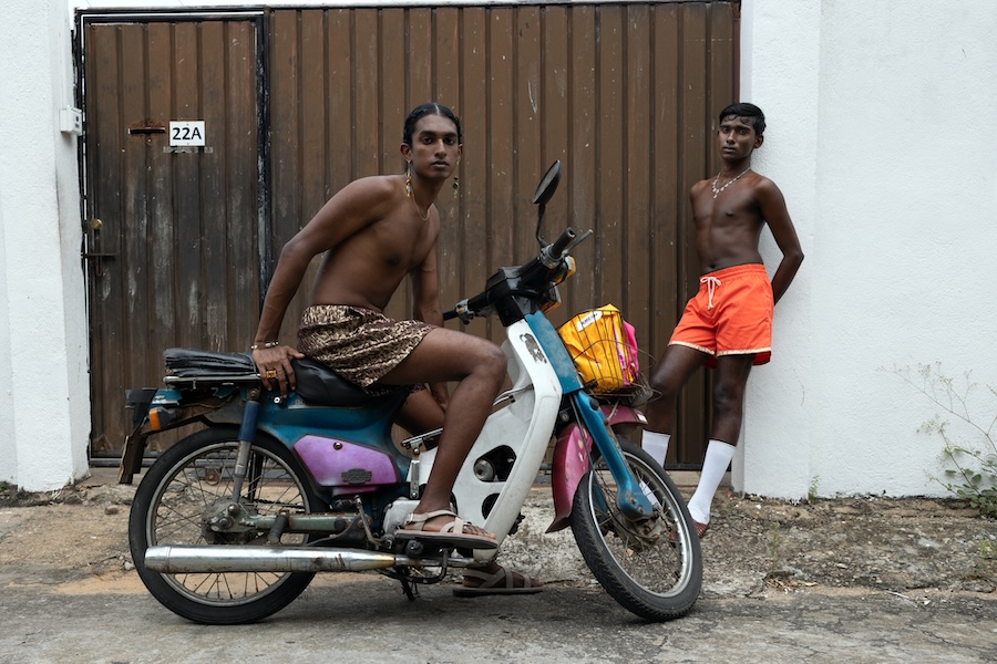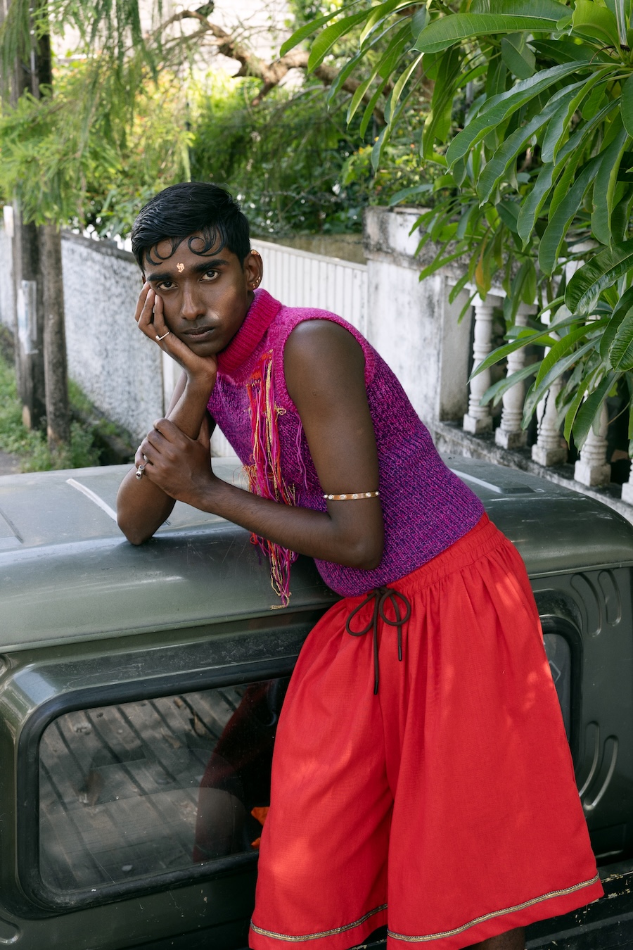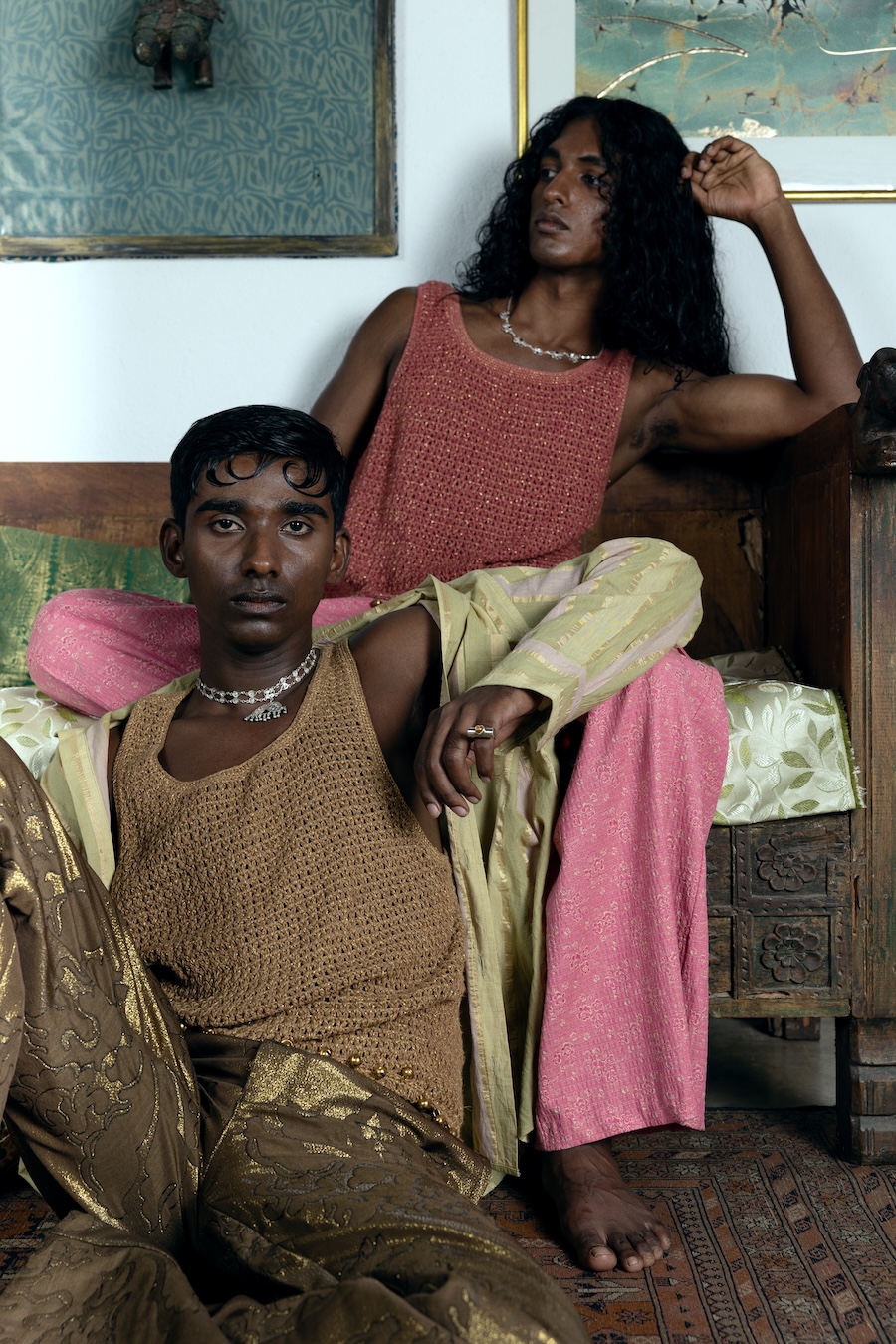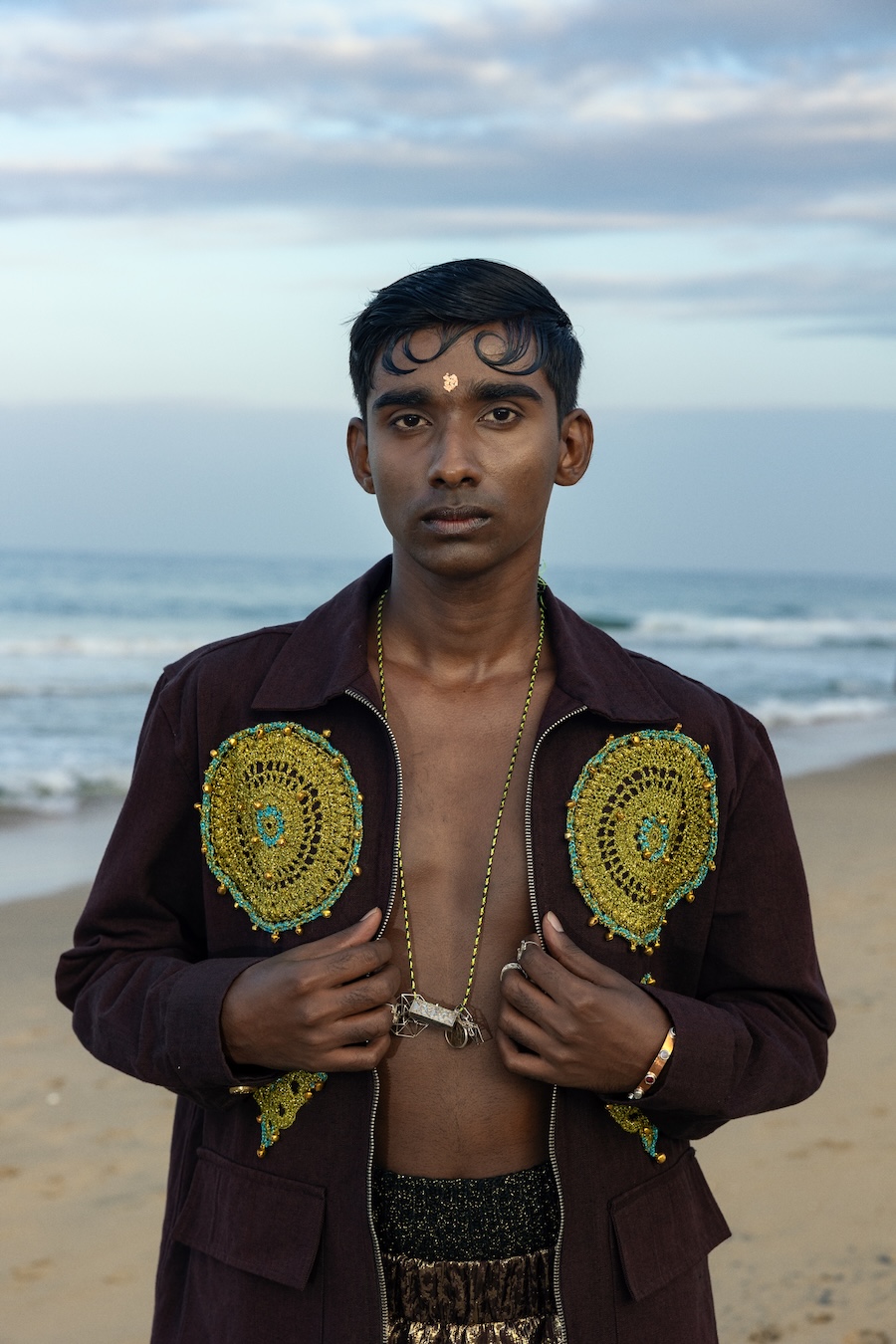 „This series is a celebration and braiding together of serendipitous chance encounters from Sri Lanka to Berlin as a nostalgic reminder that everything here is divinely connected.“ Photography and Art Direction by Gregor Seifert. Creative Direction and Styling by Tara Pascale Germani. The models are Ziha Karunaratne and Tharshanthan Thurairethinam. Hair & Make Up by Sharine Gunasekera. The fashion brand used is Amesh. A KALTBLUT exclusive.