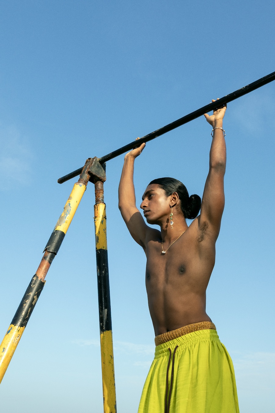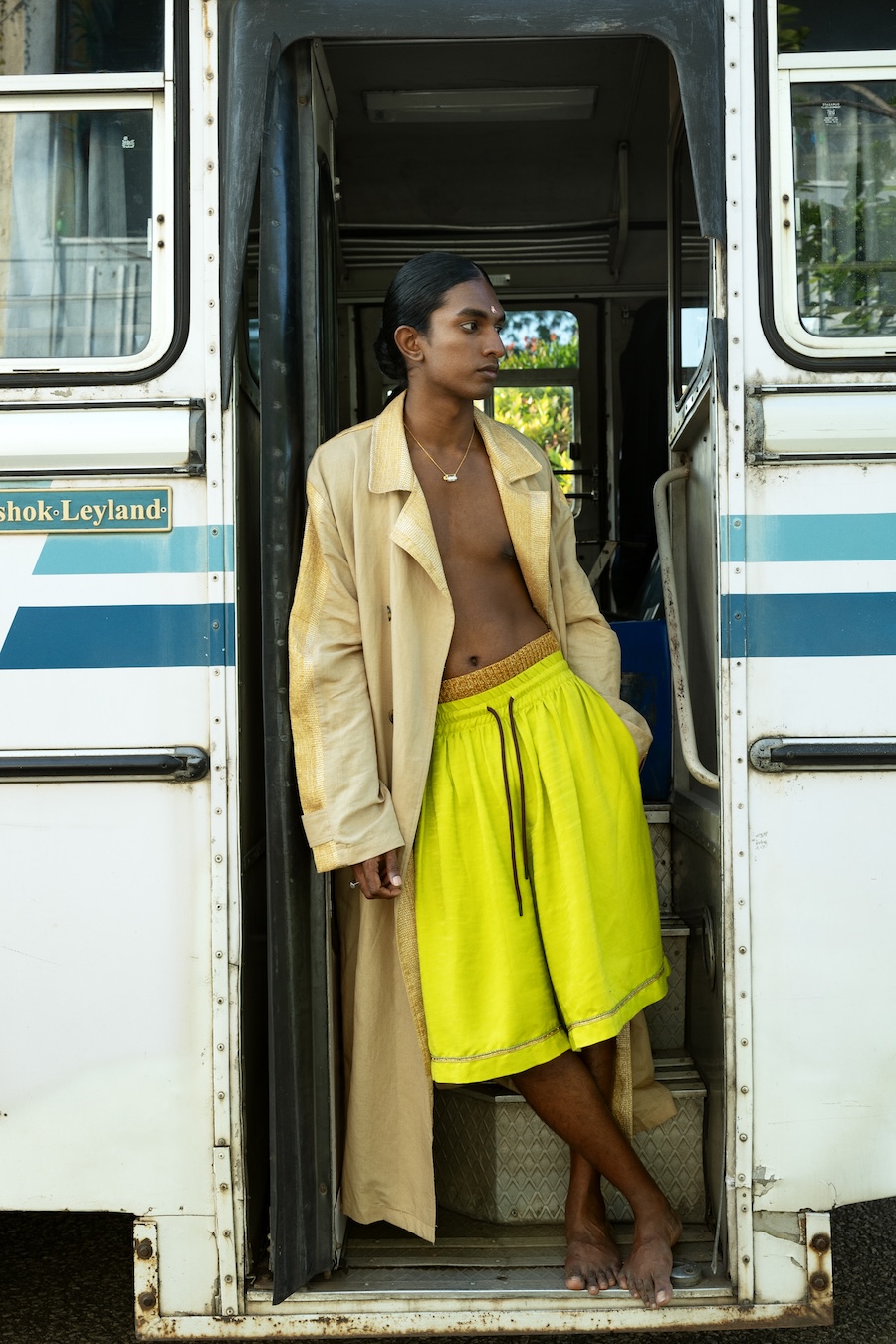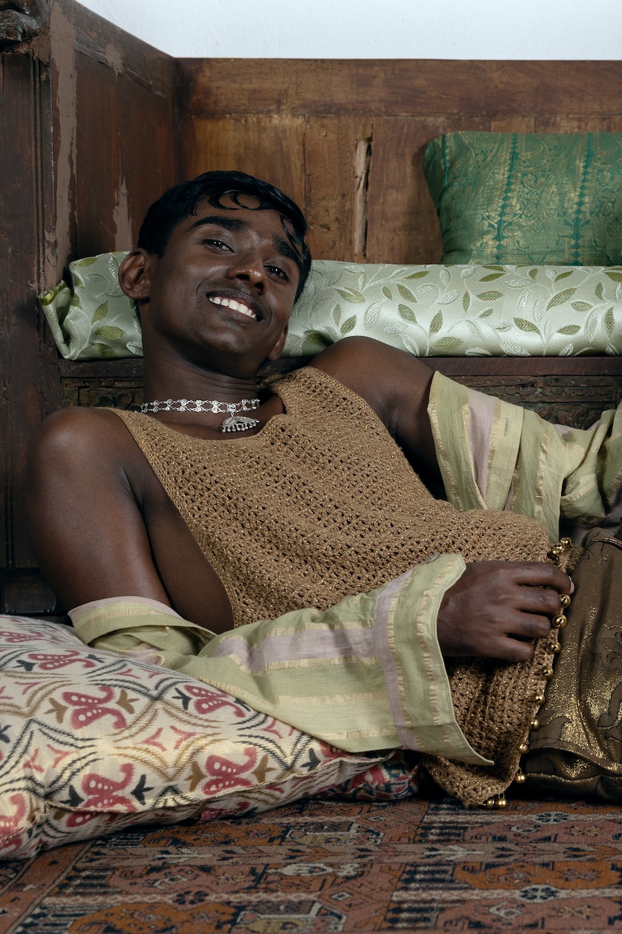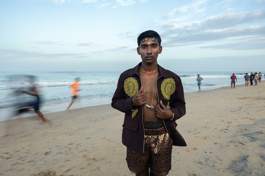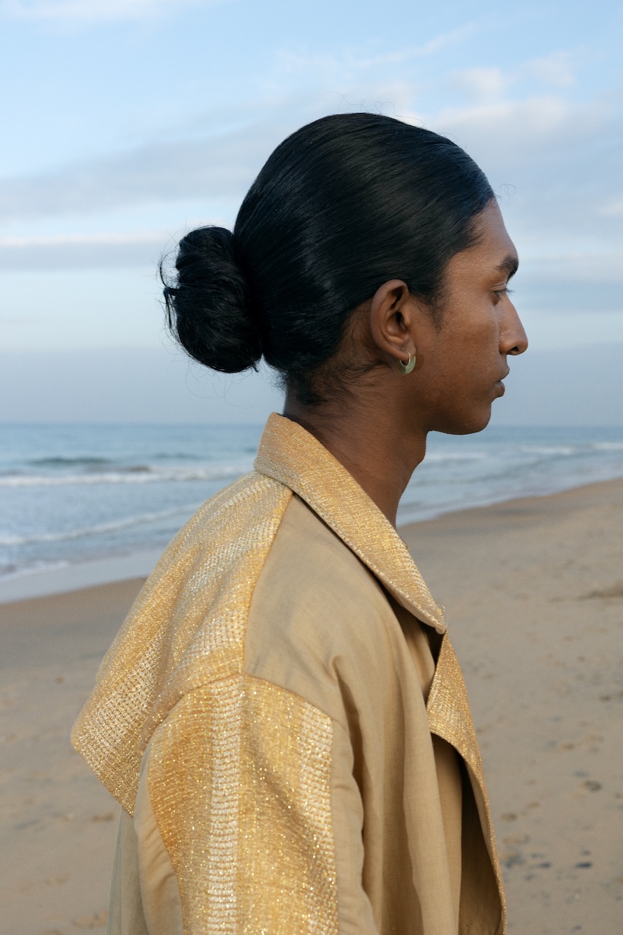 „This series is a celebration and braiding together of serendipitous chance encounters from Sri Lanka to Berlin as a nostalgic reminder that everything here is divinely connected.“ Photography and Art Direction by Gregor Seifert. Creative Direction and Styling by Tara Pascale Germani. The models are Ziha Karunaratne and Tharshanthan Thurairethinam. Hair & Make Up by Sharine Gunasekera. The fashion brand used is Amesh. A KALTBLUT exclusive.