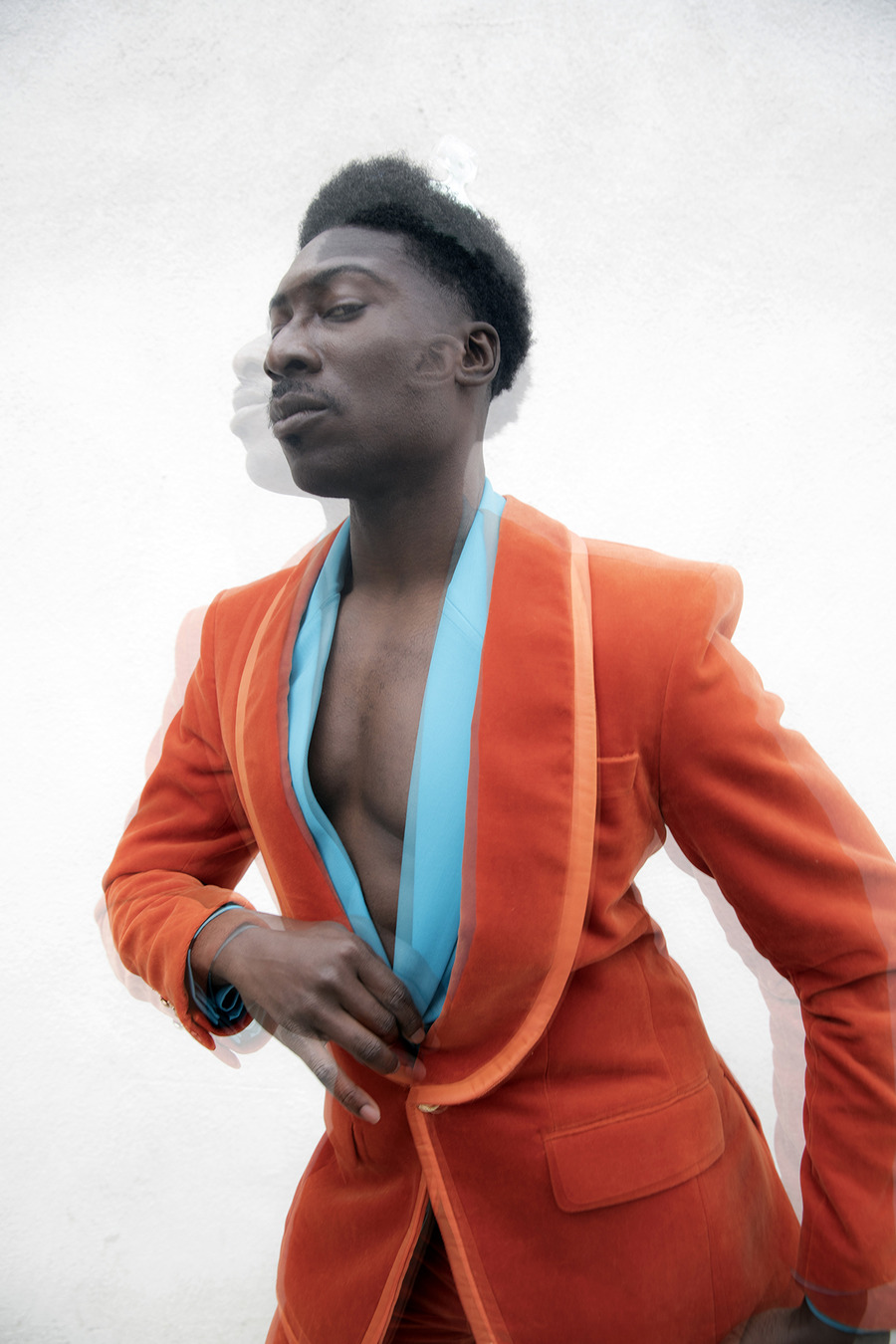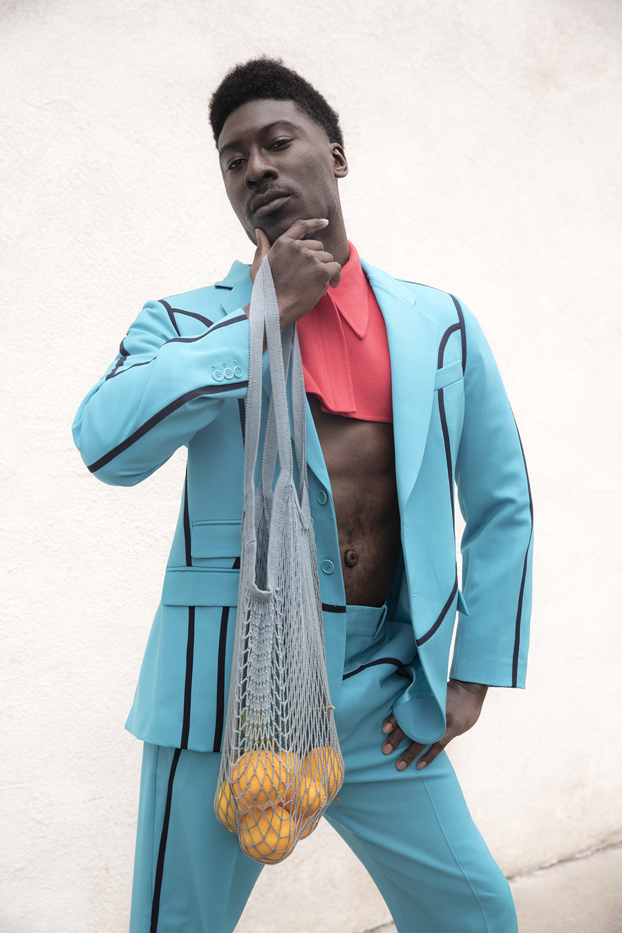 Sustainable Fusion: Nature’s Palette and Environmental Urgency! Photography by Gregory Prescott. The model is Ahssem Rish. Styling by Petar Geogiev using Le Thanh Hoa, Helen Anthony, COS, Botter, Balmain, Suit Supply, OTT, Maison Audmi, Z Zegna, Alexia Uilbarri. A KALTBLUT exclusive.