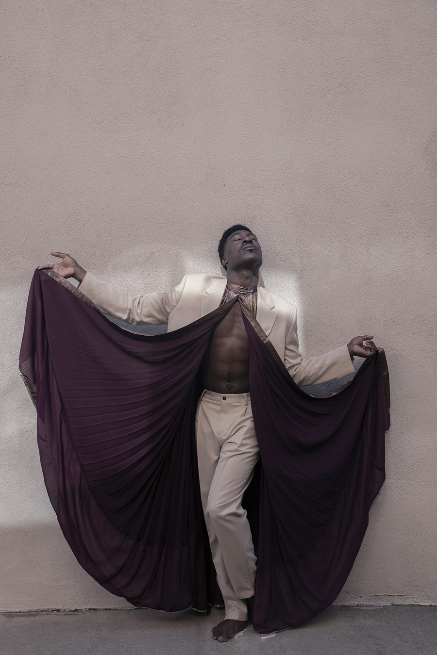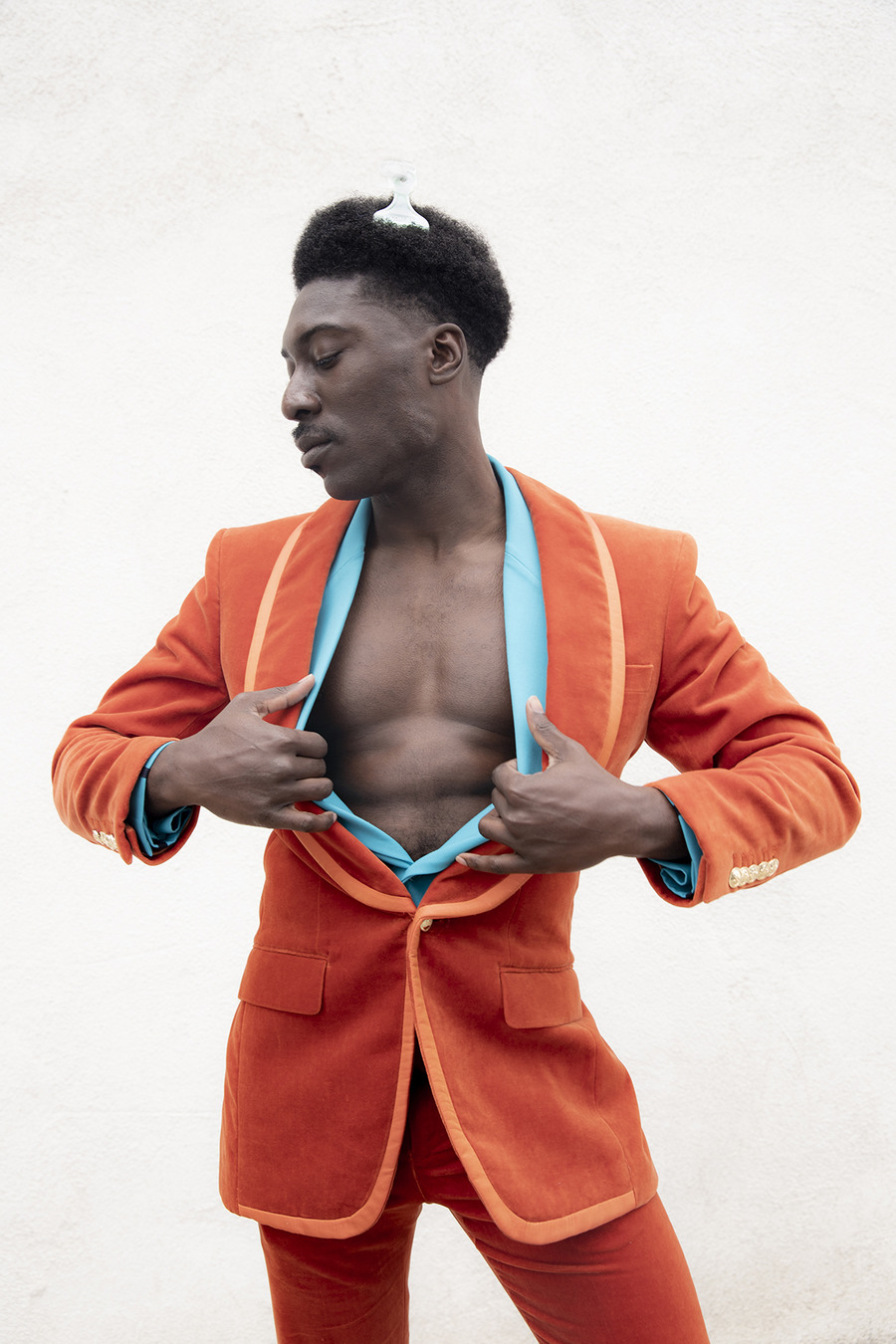 Sustainable Fusion: Nature’s Palette and Environmental Urgency! Photography by Gregory Prescott. The model is Ahssem Rish. Styling by Petar Geogiev using Le Thanh Hoa, Helen Anthony, COS, Botter, Balmain, Suit Supply, OTT, Maison Audmi, Z Zegna, Alexia Uilbarri. A KALTBLUT exclusive.