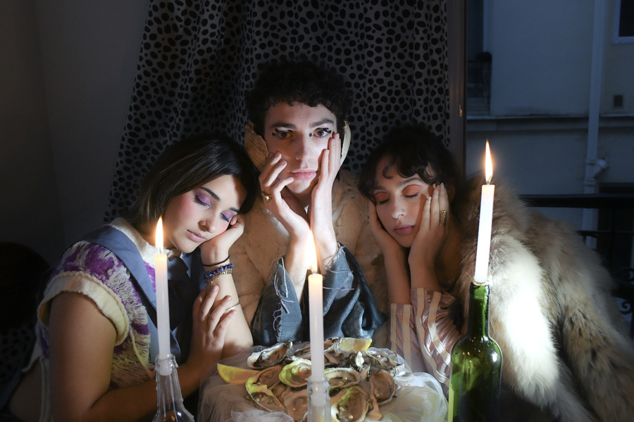 Aline Estaquier is a Parisian stylist and costume designer. Her stylistic associations are contrasting, often amalgamating everything through the practice of layering. Graduated in Art History, her touch stands out for her historical approach to clothing, taking its source to contrast with contemporaneity. Thaïs Rebaudieres is a French art historian and scenographer who draws her influences from the art of the past and the current Parisian scene. She aims to contribute to the modernization of the contemporary art scene, by participating in the realization of projects illustrating a raw reality and under-represented models.