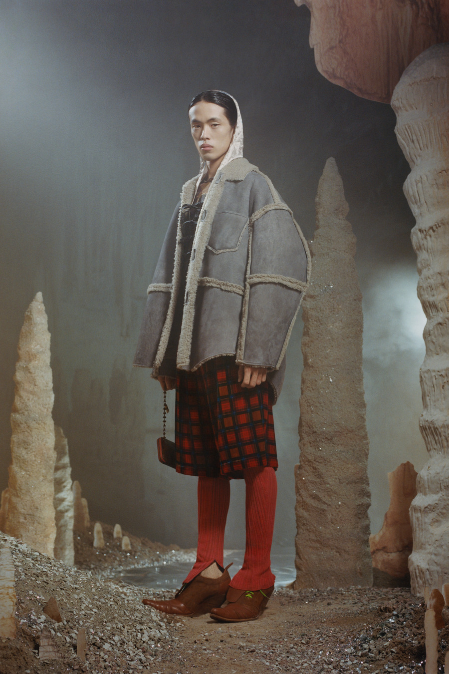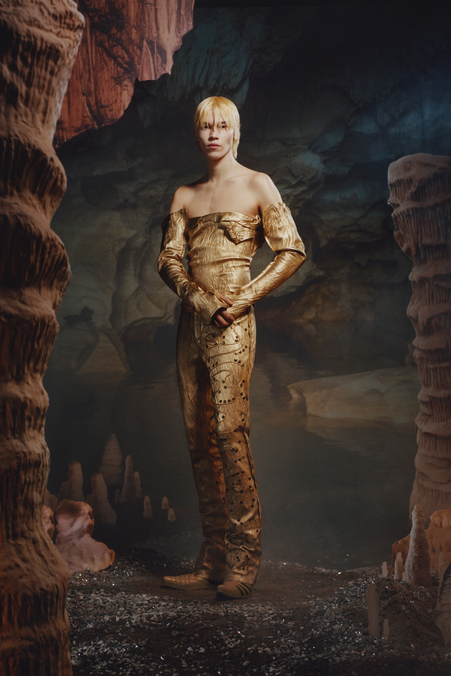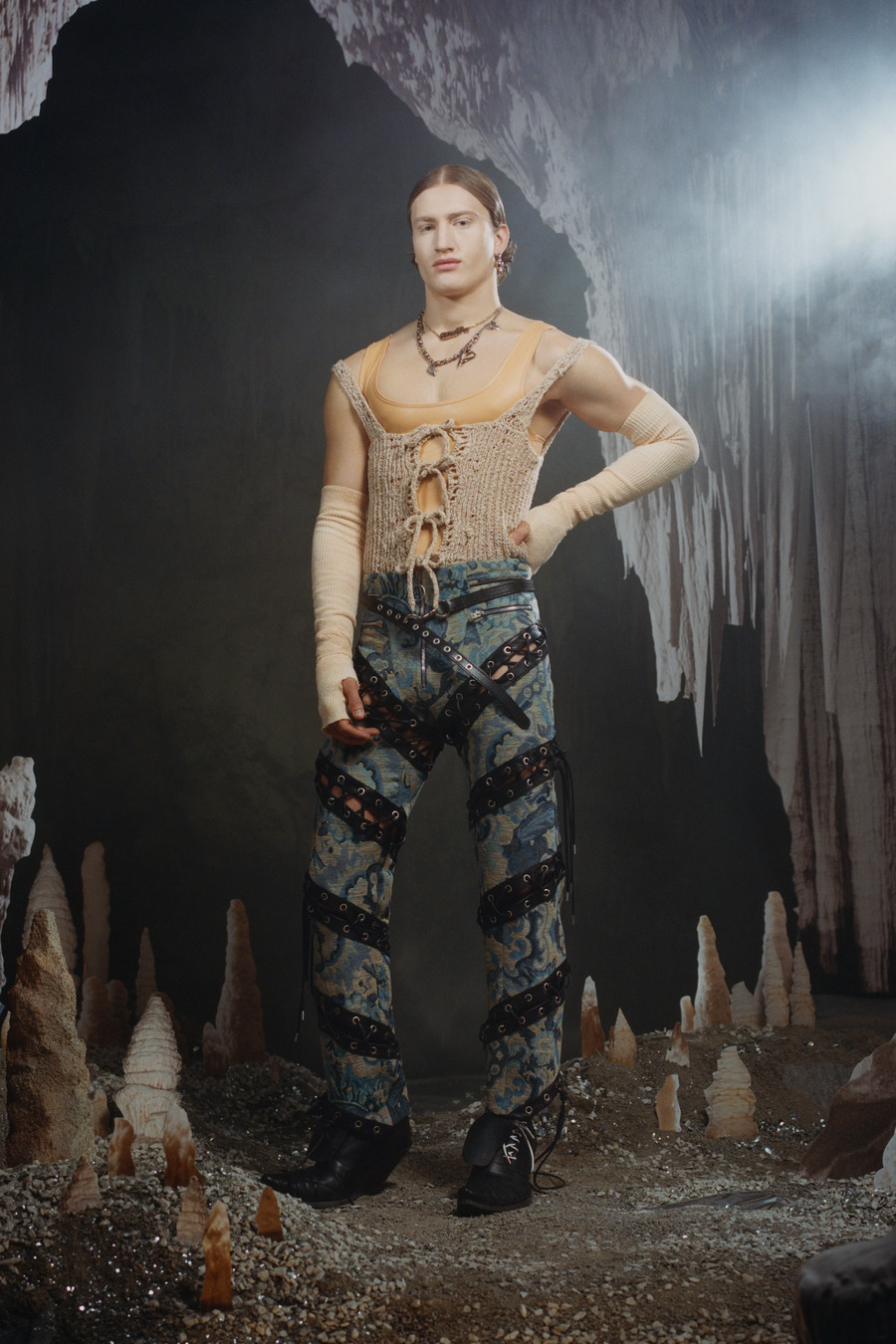 Channelling a modern caveman, the fall/winter 2023 collection celebrates the shifting boundaries of menswear. Juxtaposing fabrics and cuts that traditionally skew feminine with those that once codified masculinity, the collection also blends craft-infused daywear with experimental eveningwear for a new age of self-expression.