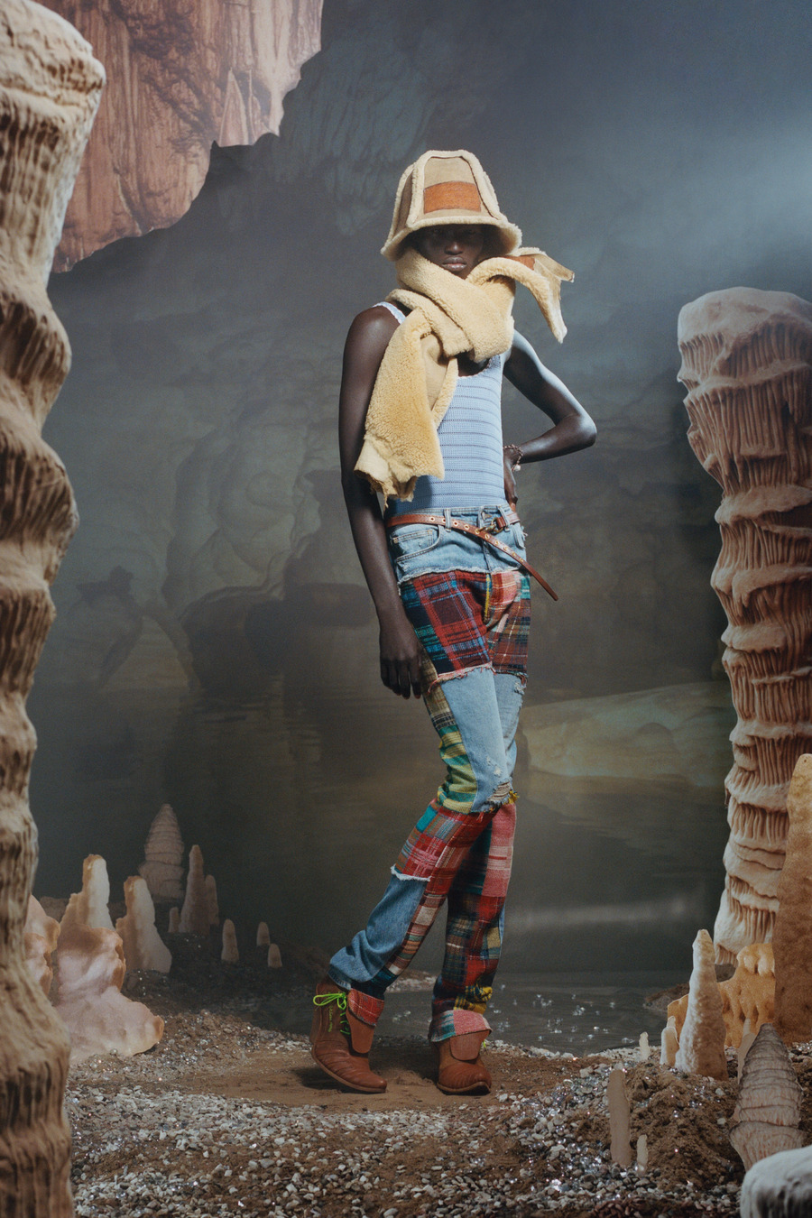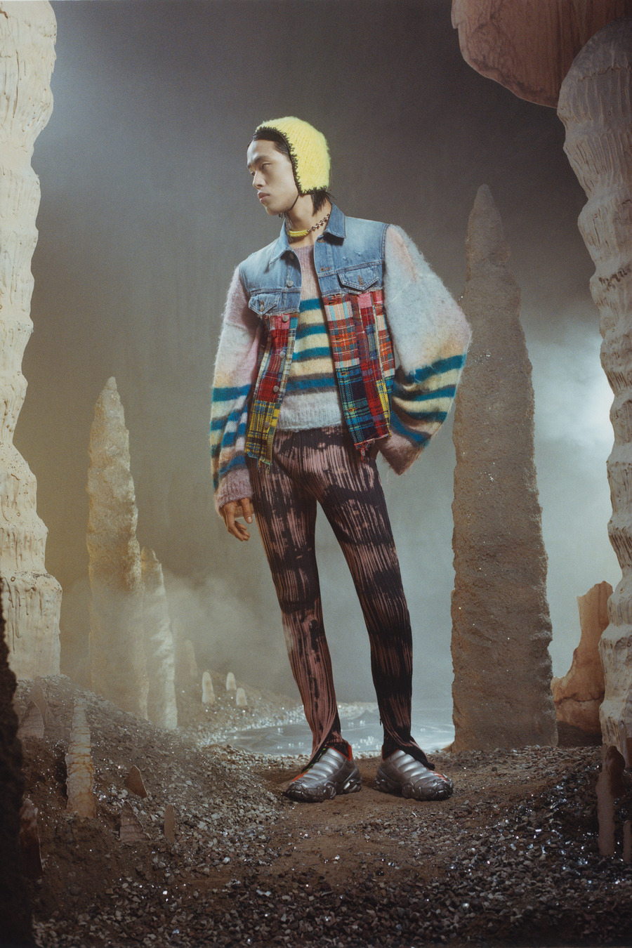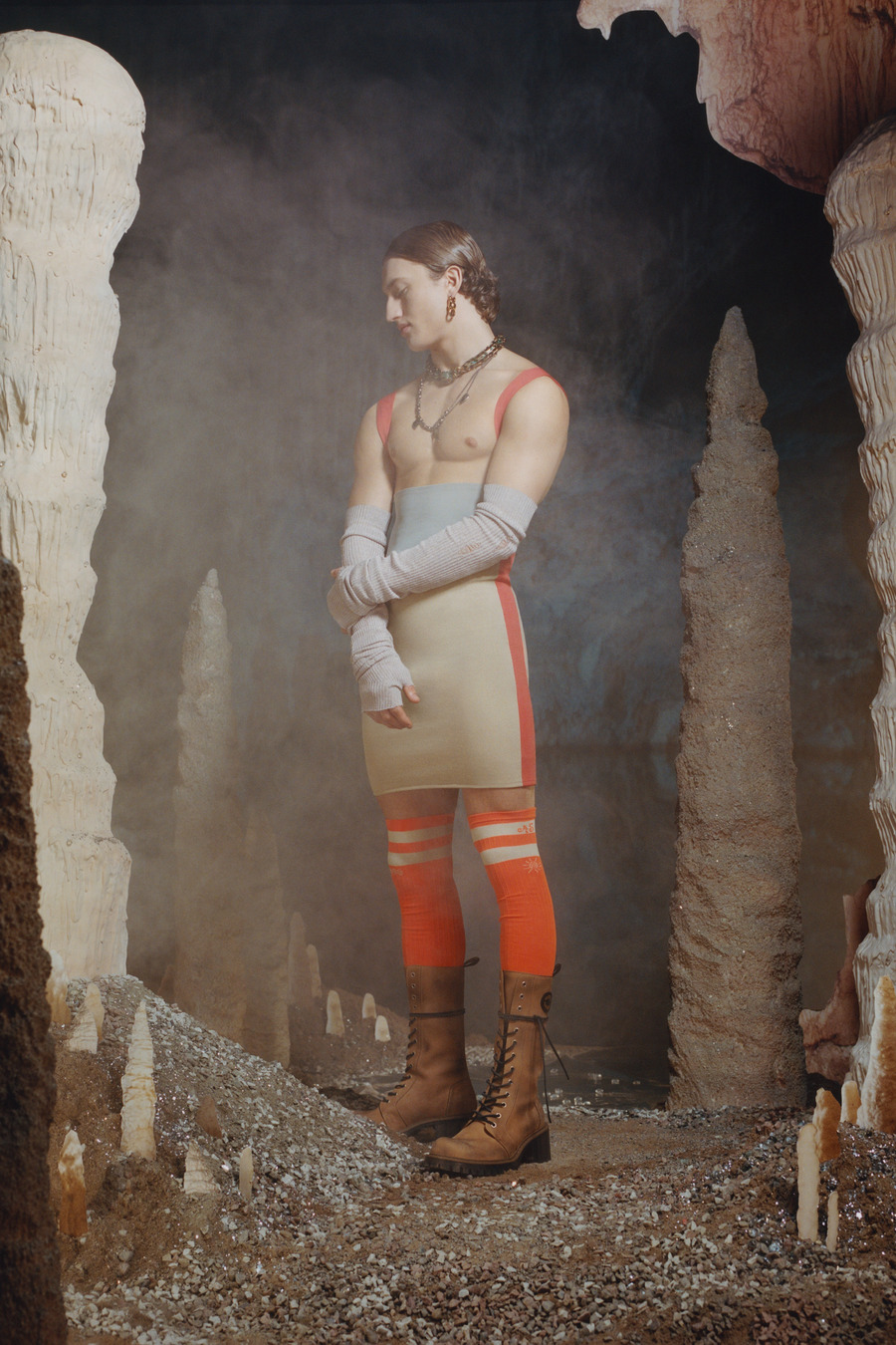 Channelling a modern caveman, the fall/winter 2023 collection celebrates the shifting boundaries of menswear. Juxtaposing fabrics and cuts that traditionally skew feminine with those that once codified masculinity, the collection also blends craft-infused daywear with experimental eveningwear for a new age of self-expression.