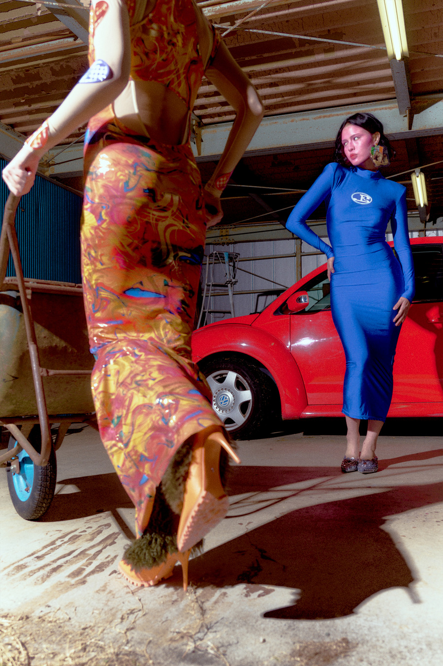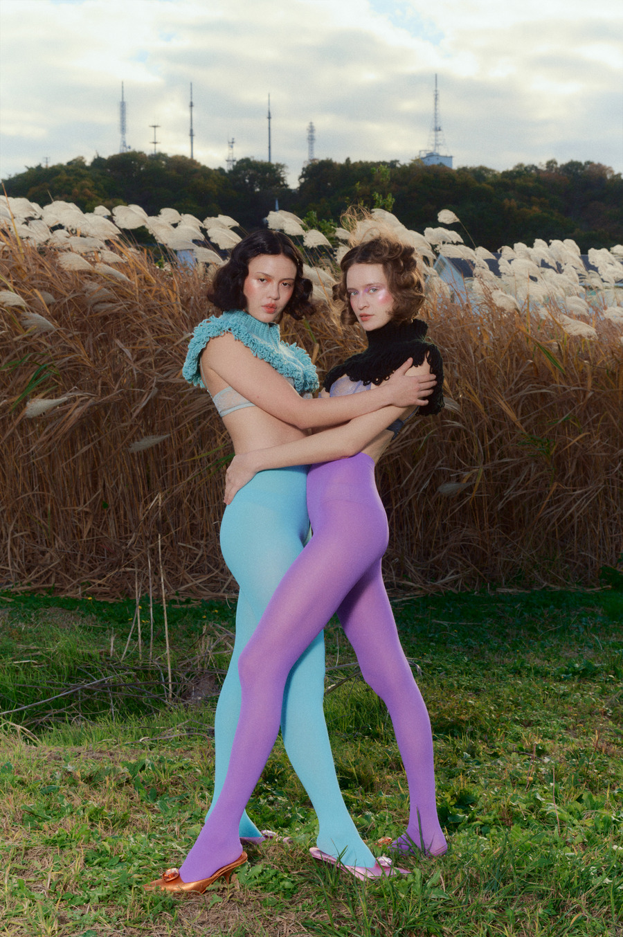 A KALTBLUT exclusive. Photography by Shoma Nakashima. The models are Oksana Slyzhuk and Sydney Obster. Hair by Siori Saegusa. Make up by Nene Sawamura. Styling by Uka using Maison J Simone, MELISSA+Y/PROJECT, Susan Fang, DIM AT NOON × Ren, niin, SHUSHU/TONG, Victor & Rolf, YELLO, Friesenguys, PAOLA VILAS.