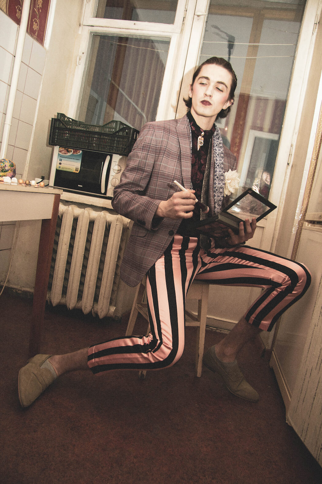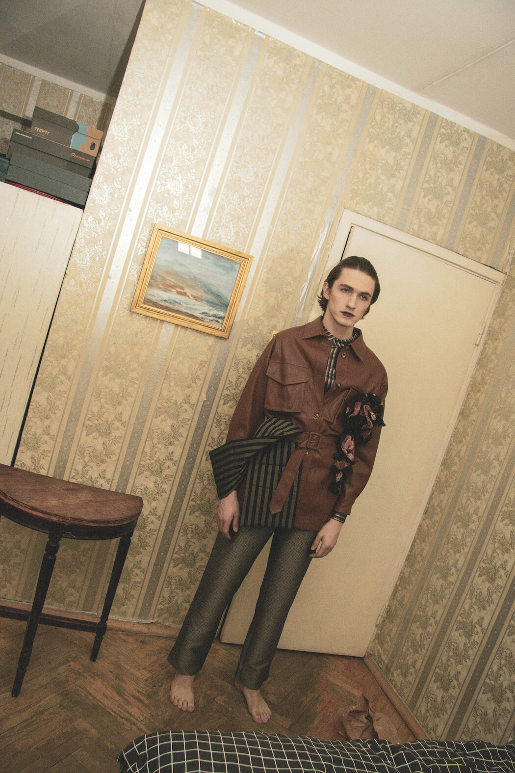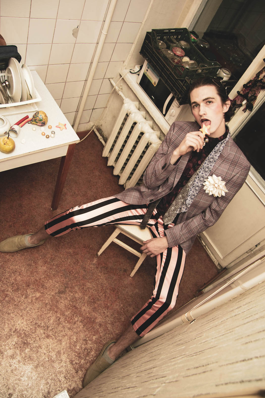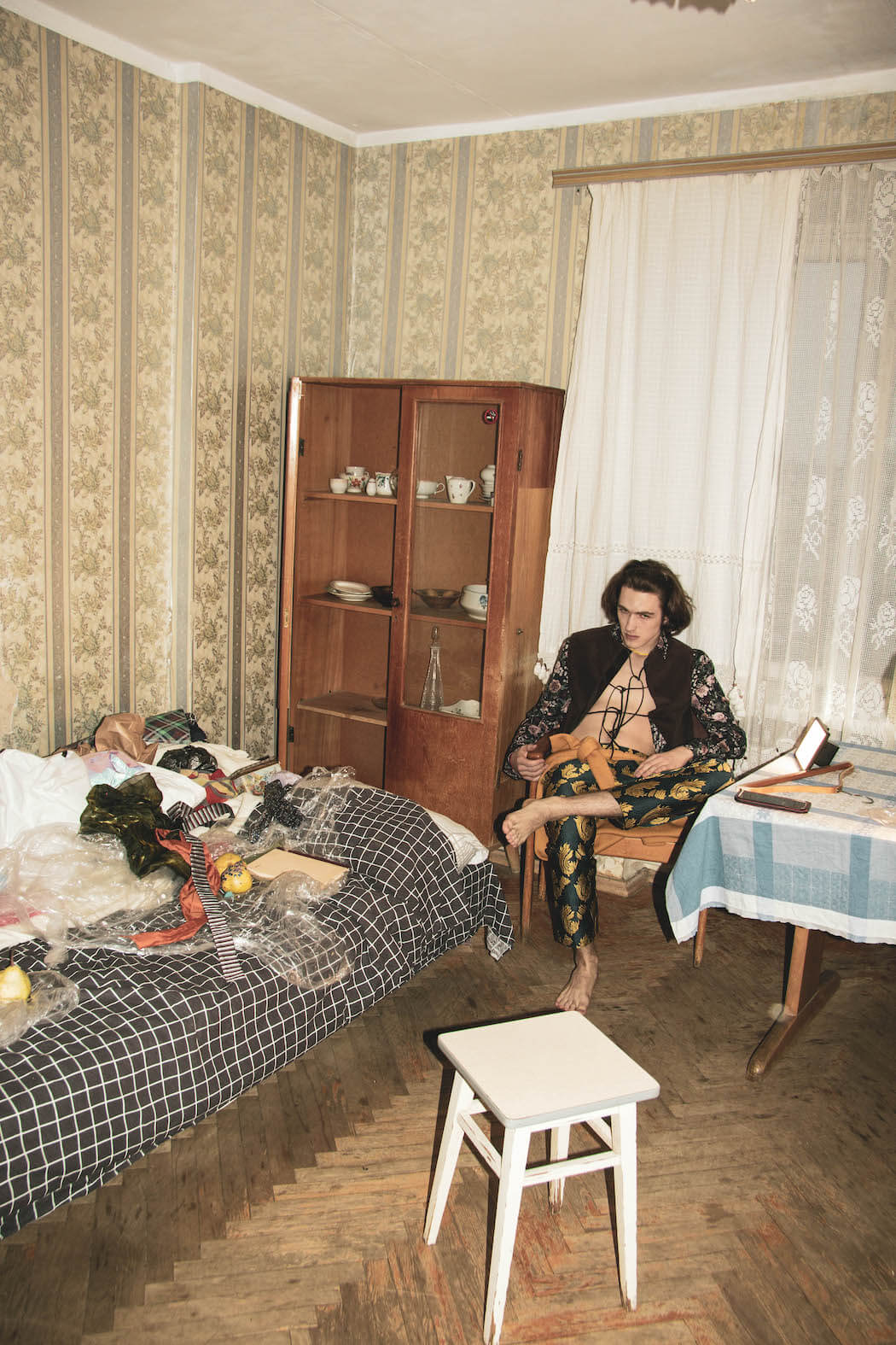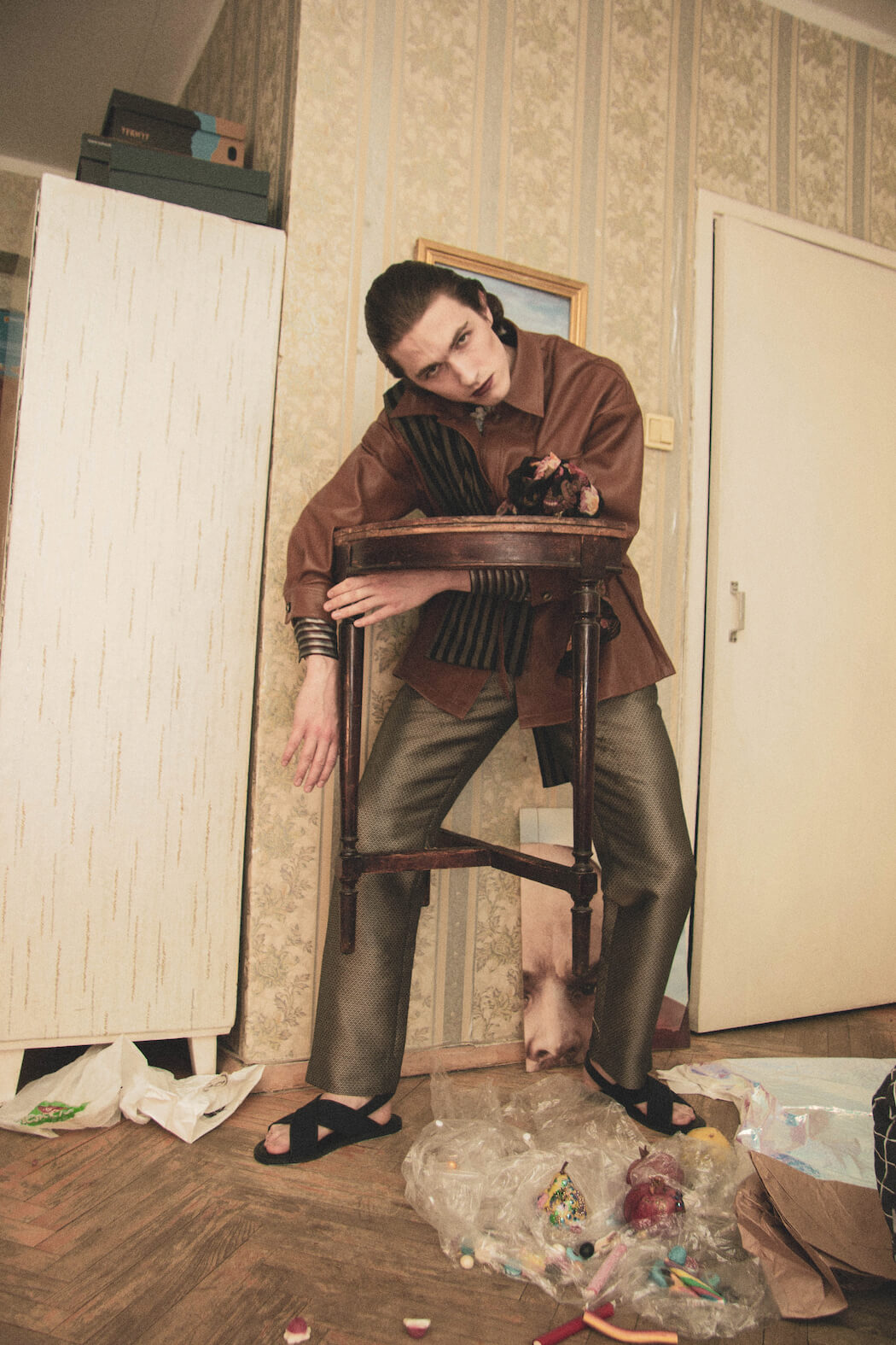 A KALTBLUT exclusive editorial and film. Photography and concept by Julia Chernysheva. Model is Alexey Gridin. Video by Denis Karpenkov. Styling by Olga Moskovenko. Make up and hair by Elena. Set design by Nadia Feogerdinova. Fashion by Dokuchaeva, H&M, TopShop, concept-store hype.kor, Fendi.