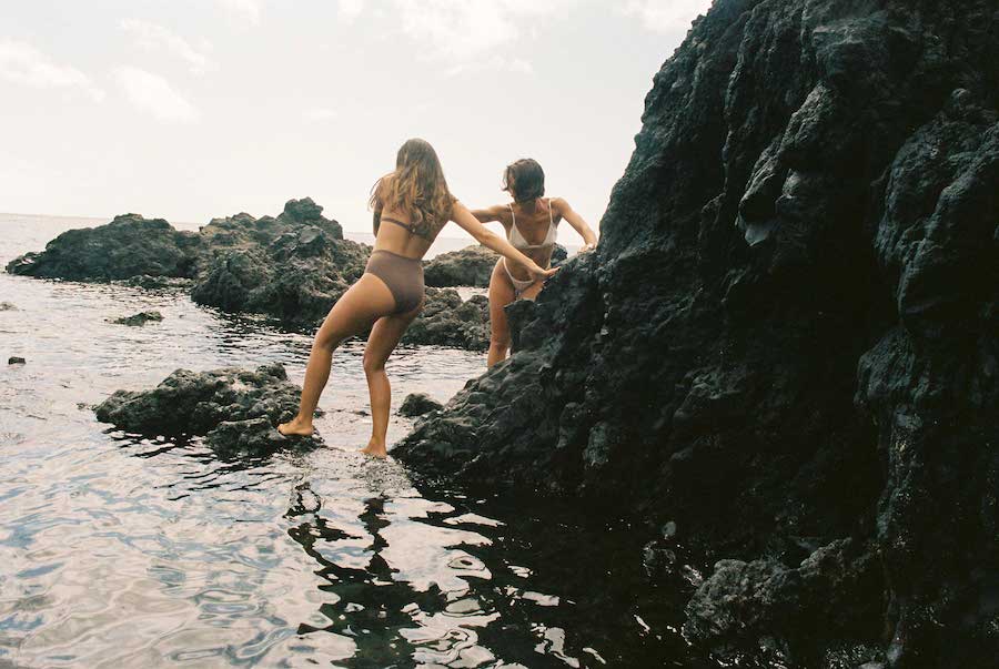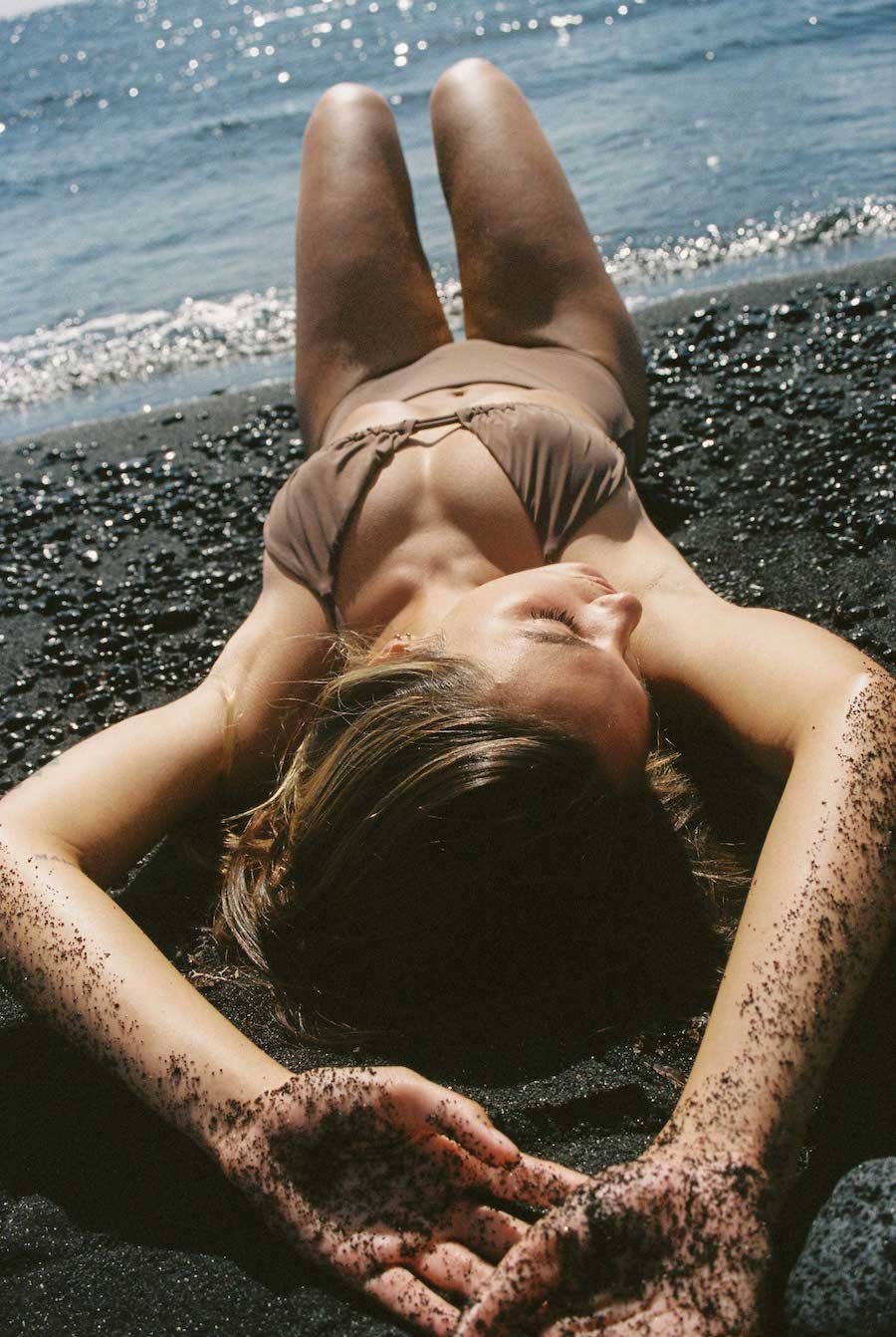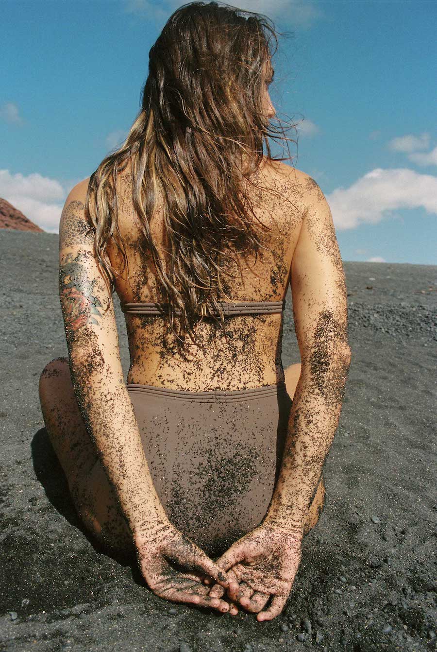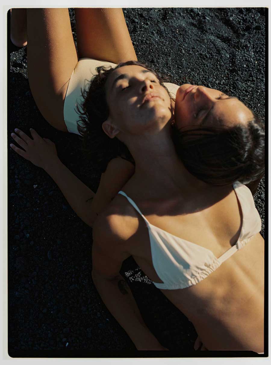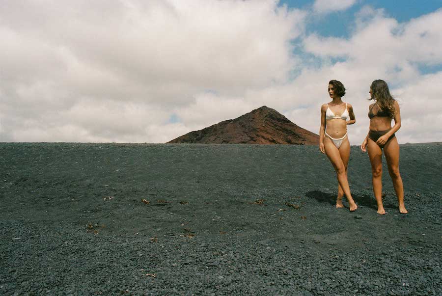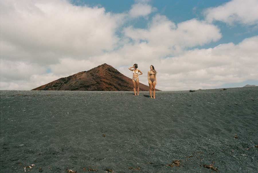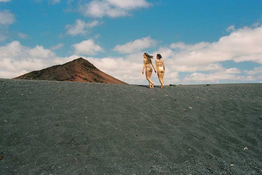 A KALTBLUT exclusive. Photography by Milena Baeza. Models are Sofia Torreggiani and Matilde Vedove. “Pops of green from cactuses. Dark sand beaches. I invited Matilde and Sofia, locals from Fuerteventura (the island nearby), to join me in exploring Lanzarote island until the sun sets. I wanted to portray their friendship, and the human connection, and make it shine through the raw backdrop of Lanzarote. We adventured through this land getting blown away by the uniqueness of the landscape that could be a piece of Mars.”